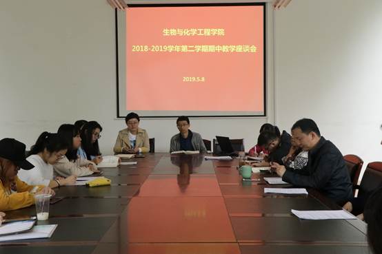 5月8日中午,生化学院在ND103会议室召开了2018-2019学年第二学期的期中教学检查座谈会,学院教学副院长沈昊宇、党委副书记赵涵,各研究所教学负责人、教务办及学工办老师参加。会议由沈昊宇主持。