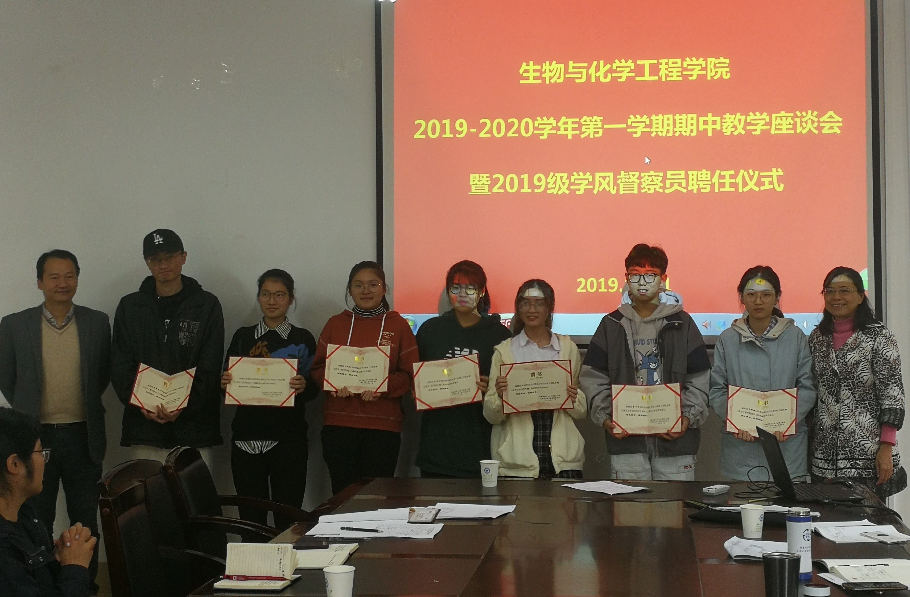 会上,沈昊宇副院长强调了召开此次期中师生座谈交流会的目的和意义,希望大家大胆发言,积极为学院提高教学质量、健康持续发展建言献策。会议为2019级新生班级的学风督察员颁发了聘书,沈昊宇副院长希望学风督察员在学风建设部的指导下开展工作,充分发挥学院与班级的桥梁作用,共同为学院教学质量的提升作出努力。随后,与会的学风督察员们从课程设置、考风学风建设、教学条件、教师授课问题等方面提出了宝贵的意见和建议。学院教师也就同学们反映的部分问题进行了解答,现场气氛热烈。
