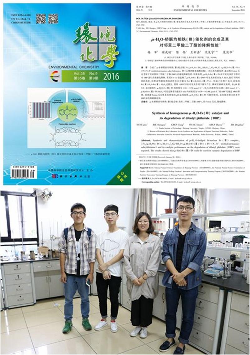 本科生在中文核心期刊《环境化学》上发表封面文章