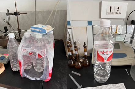 不明试剂或样品未密封,未粘贴试剂标签;实验台上的矿泉水瓶未撕去包装纸并粘贴试剂标签,不符合安全规范,请及时整改。