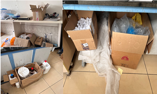 3. 检查中发现部分实验室仍存在纸箱和泡沫箱堆放现象,请及时整改。