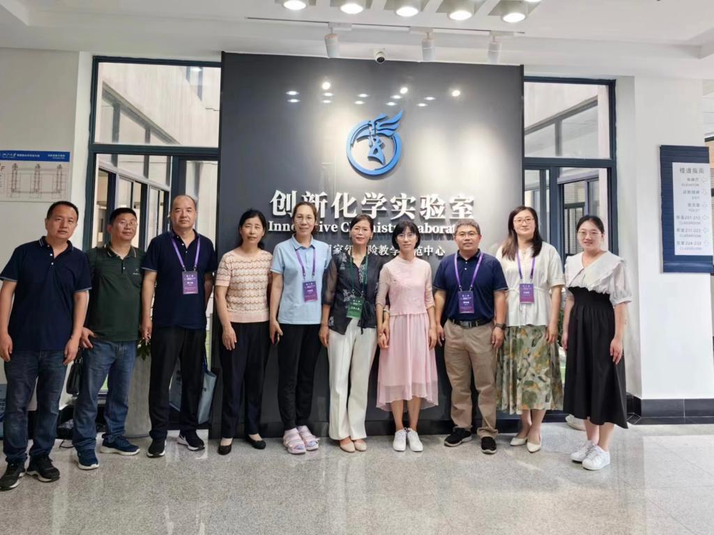 之后,刘迎春带领与会教师参观了基础化学实验室、中级化学实验室和创新化学实验室,对实验室建设和文化宣传等进行经验分享。