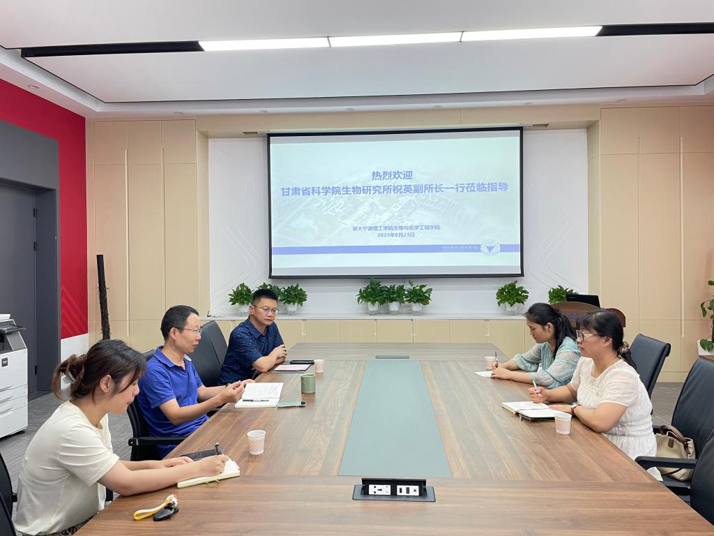 祝英对学院的接待表示感谢,就甘肃省科学院生物研究所建所历史、发展历程、研究方向、成果特色等情况等做了介绍。