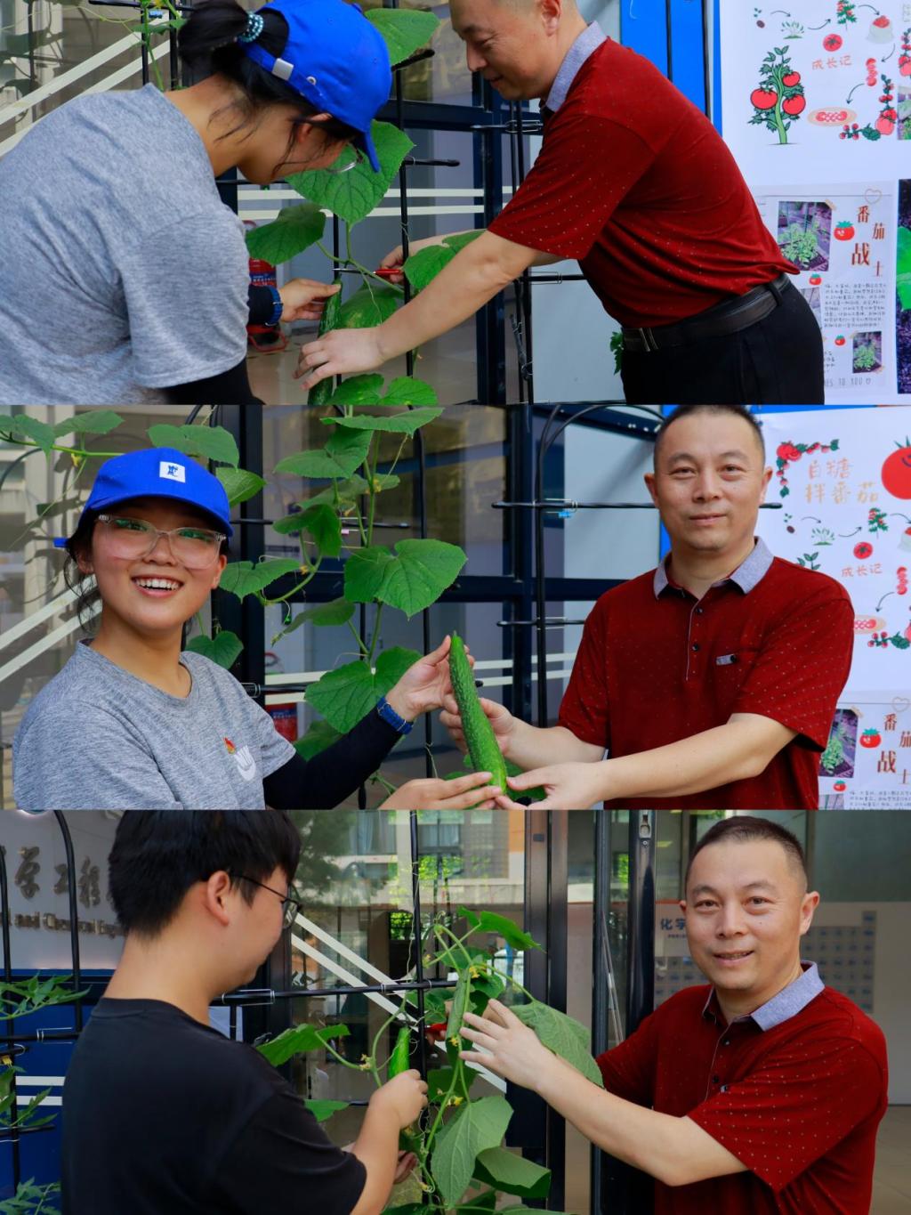 大会最后,劳动成果的采摘成为本次活动的一个亮点环节。武玉学老师和学生一同采摘下成熟的黄瓜,这正是劳动教育的意义所在,同学们在辛勤地培育下收获劳动果实和感受劳动之美,让“世界因劳动变得更美好”的种子在同学们心中生根、发芽。