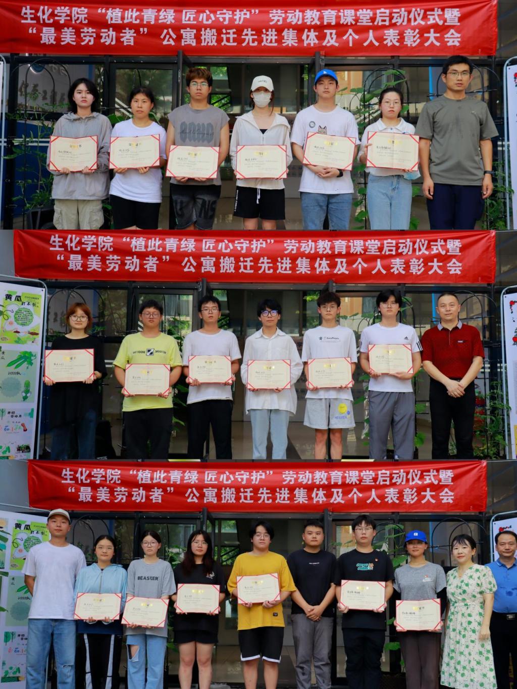 生化学院举办“植此青绿 匠心守护”劳动教育课堂启动仪式 暨“最美劳动者”公寓搬迁先进集体及个人表彰大会