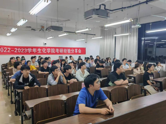 优异成绩的取得,既是考研学子寒窗苦读、不懈努力的结果,也是生化学院不断推进良好教风学风建设的显著成果。继往开来,承上启下。生化学院于5月17日晚,召开考研经验分享会,邀请部分2023届考研成功的同学向学院大二、大三的同学们分享考研经验,同学们相互交流考研院校的选择、考研科目的学习心得等,现场气氛活跃。