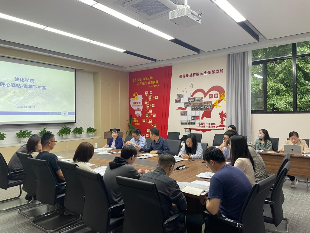 为更好服务青年教师发展,5月17日下午,生化学院在ND103举办匠心驿站·青年教师下午茶”活动,学院党委书记刘哲、副院长王进波、党委副书记王常青与学院青年教师参加会议,座谈会由王进波主持。