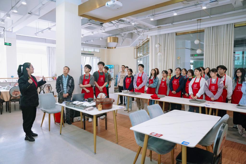 以红色浸润心灵,让传统文化触手可及。2023年4月23日,生化学院组织30名师生在弘毅园餐厅二楼求是园开展了主题为“非遗进校园,匠心甬传承”的劳动教育实践活动。此次活动还邀请到了王升大博物馆的陈麟老师来校进行宣讲。