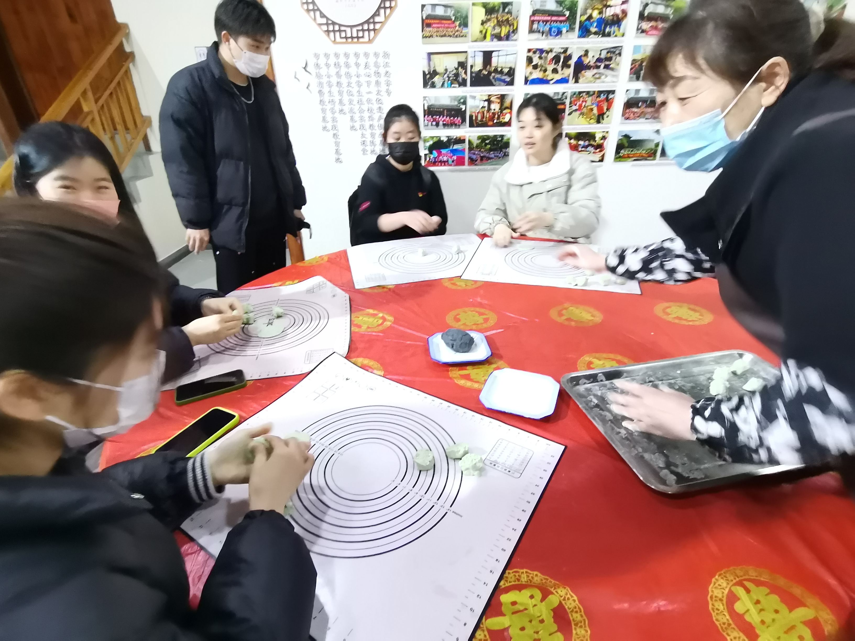 中国人讲究“敬天惜物”,四时八节,应季而点,是先人对时令的尊崇和敬畏。王升大博物馆每月都有按当季时令来制作米食的传统主题活动。此次活动中,党支部的同学还跟随老师的指导一起擀皮、包馅,制作青团。时令米食蕴含了丰富多彩的民俗文化,党员同志们在感受传统文化魅力的同时,也懂得了爱惜粮食、珍惜劳动成果,为树立良好人生观、价值观,获得了感性认识。