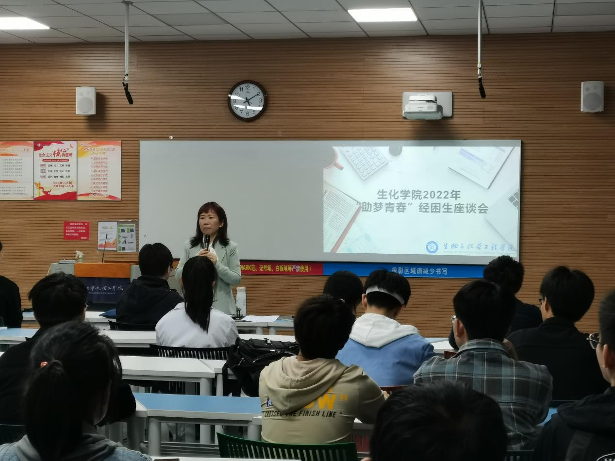 为进一步做好生化学院家庭经济困难学生的关心关爱工作,激励学生励志求学,10月25日晚,生化学院在NB104举办“助梦青春”经困生座谈会。生化学院党委副书记王常青、负责资助工作的辅导员董文举和48名家庭经济困难生参加会议。