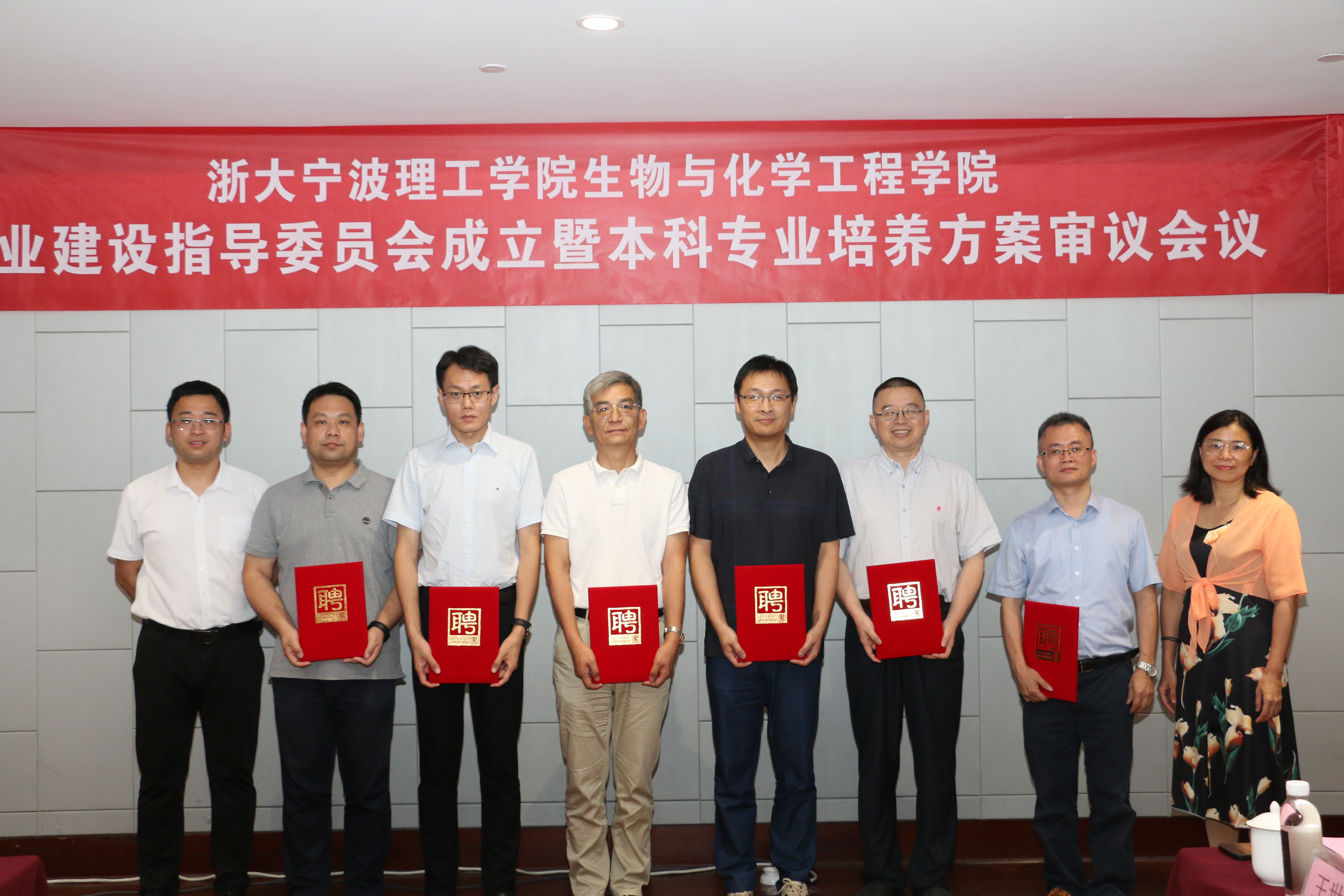 生化学院院长侯阳介绍了学院情况,副院长张艳辉宣读了学院专业建设指导委员会聘任文件。鲁东明副校长为中北大学原校长刘有智教授、宁波诺丁汉大学副校长吴韬教授、宁波大学科技处处长李砚硕教授、宁波中金石化有限公司总经理徐保岳、美康生物科技有限公司总经理邹继华、宁波三生生物科技股份有限公司总经理翁士乔、艾美卫信生物药业(浙江)有限公司总经理李强、浙江神洲药业股份有限公司总经理王友富、中石化宁波新材料研究院院长黄朝晖、中化宁波理工联合实验室主任王世辉等专业建设指导委员会委员颁发聘书;教务处处长沈昊宇和学院院长侯阳为企业家导师颁发聘书。