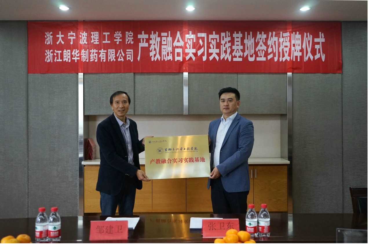 浙江朗华制药是浙大宁波理工-中宁化联合实验室的生产基地,双方此前有过多次接洽与合作。此次产教融合实习实践基地的签约授牌,标志着双方的合作迈向了一个更高的台阶,将对我院化学工程与工艺、制药工程等专业的建设具有积极的推动作用。