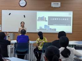 张伟丹医师结合大量的临床实例,通过丰富多彩的PPT展示,对常见的创伤救护技术和救护过程中的注意事项,进行了生动形象的讲解与培训。周夷霞医师首先播放了一段发生在院内的心脏骤停病人的抢救视频,生动形象地展示了在短短几分钟的黄金抢救时间,科学救治是挽回病人生命的关键。接着,周医师利用PPT展示结合仪器实操,为大家详细讲解了心肺复苏的操作要领和AED的使用方法。培训过程中,师生们认真聆听并积极互动,现场气氛十分热烈。