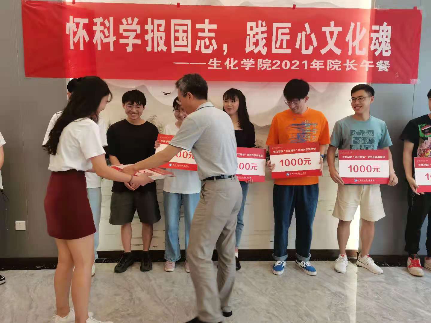 午餐会开始,院长方征平对今年院考研成绩作简单总结并代表学院全体师生表达对到场毕业生成功进入双一流高校QS排名前50名校的美好祝福与殷切希望。随后,他结合自身经历鼓励同学们在以后的求学旅程中敢于创新、勇于拼搏,以坚持、严谨的科研态度面对未知的挑战。然后方院长为优秀升学学子颁发升学奖学金。