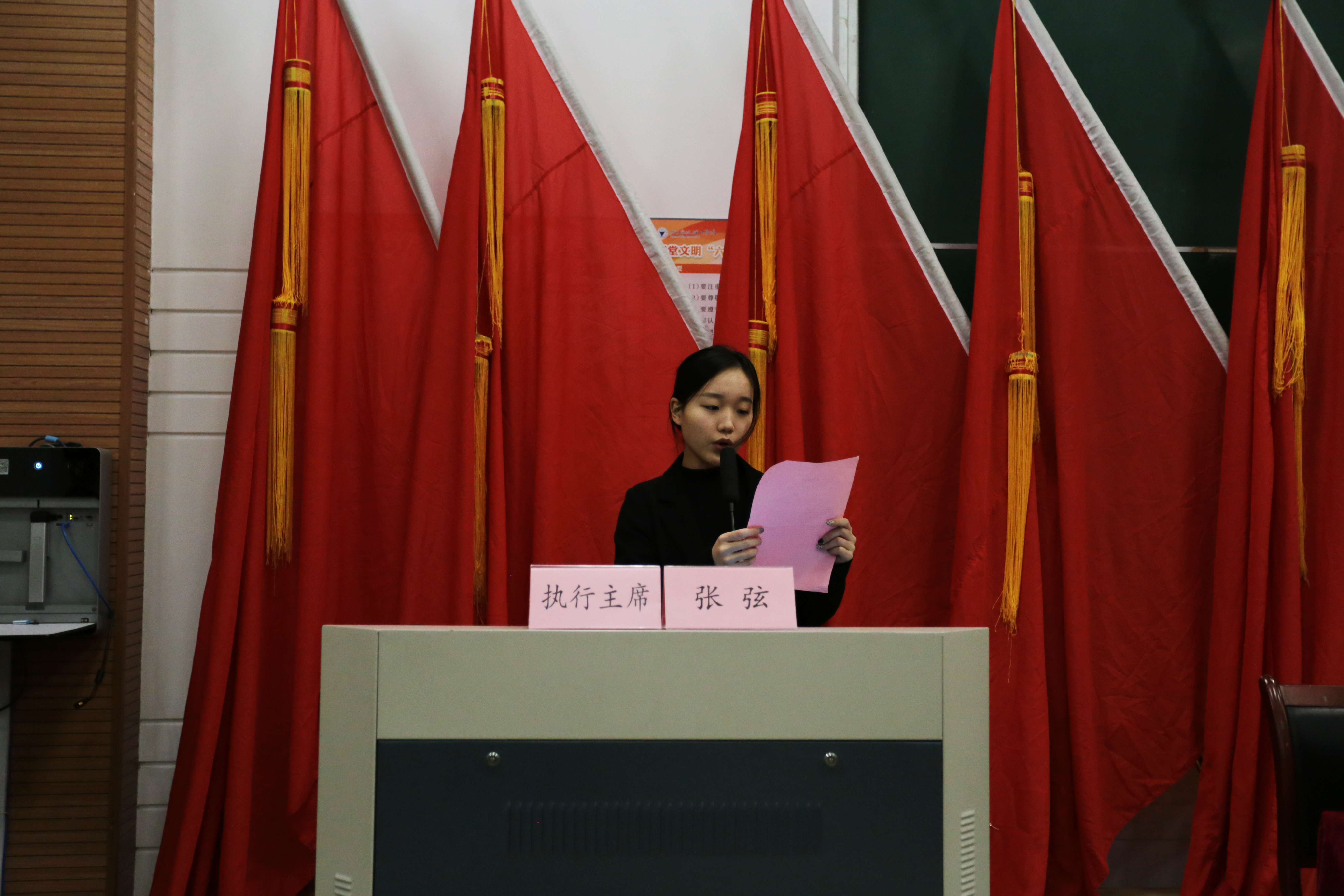 校学生会轮值主席屠婧在祝贺本次大会顺利召开的同时表示学生会组织应积极发挥组织模范带头作用,积极引导带领青年,促进青年团员共同成长共同进步。