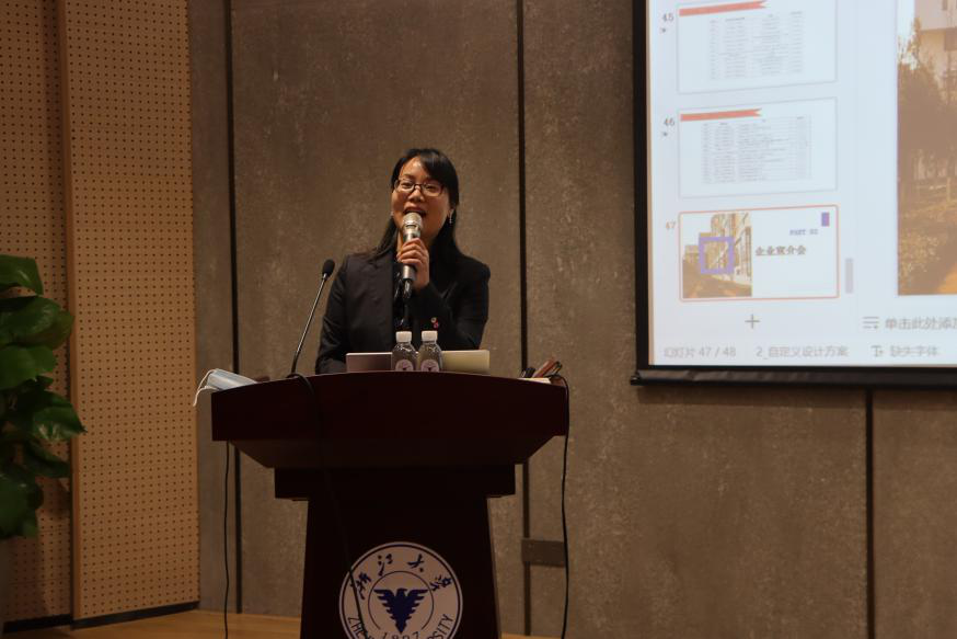 随后,浙江朗华制药有限公司医药研究所虞文亚女士、宁波金发新材有限公司王战芳先生、浙江我武生物科技股份有限公司罗兴安先生分别登台介绍了各自企业情况以及招聘人员的相关要求,鼓励毕业生们不忘初心,勇攀高峰!