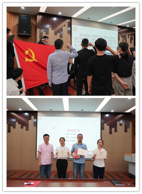 紧接着赵涵副书记宣读了本学期新发展的22名党员名单,由楼文军书记和赵涵副书记为新发展党员配发党徽。同时新发展党员进行了入党宣誓和老党员重温了入党誓词。