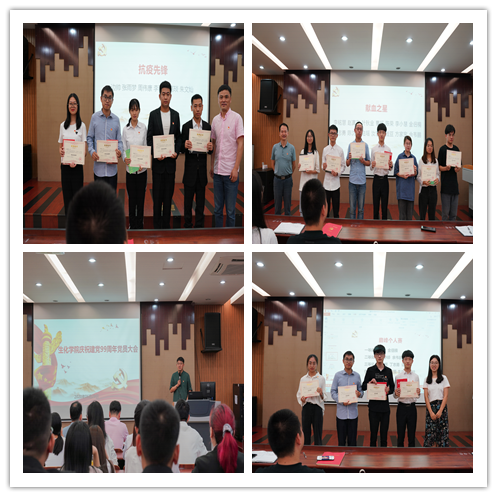 最后会议表彰了在本次疫情中投身战疫的“抗疫先锋”党员和带头参与无偿献血的“献血之星”党员。同时对在庆祝建党99周年“最强大脑”学习强国答题挑战赛中斩获佳绩的团体和个人颁发了证书和书籍。由楼文军书记、赵涵副书记向以上获奖的集体和党员颁奖。