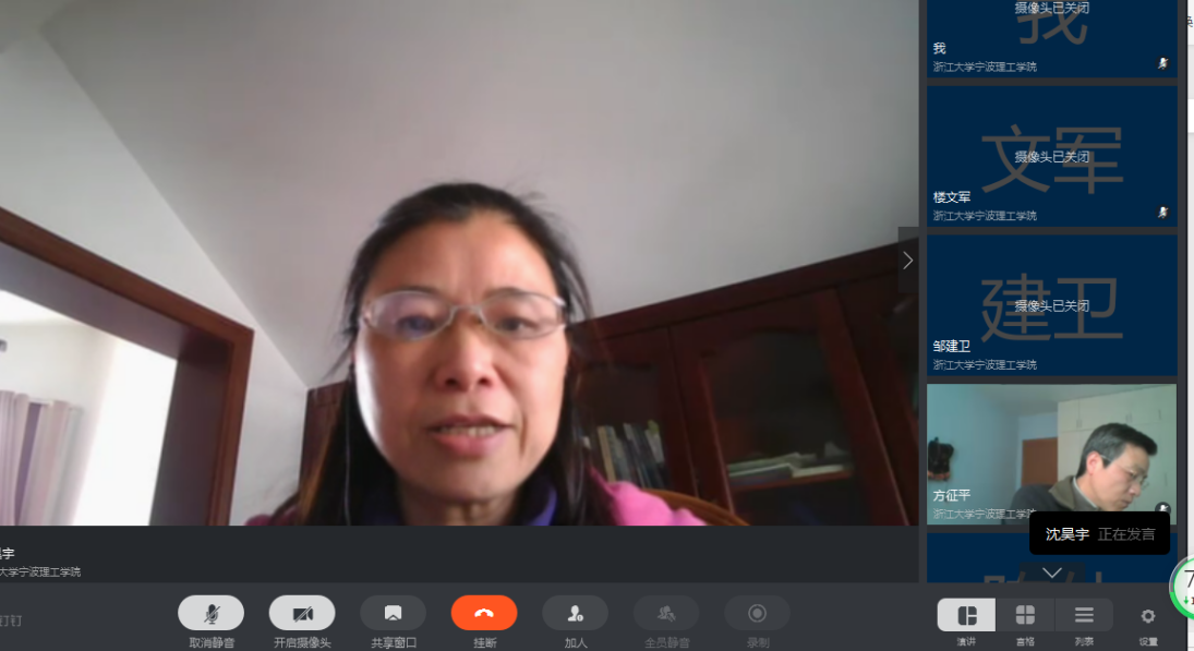 分享会上,学院教学副院长沈昊宇介绍全院线上教学运行基本情况,开学来的三周,全院线上教学活动开展顺利,各网络平台及辅助教学群运行较好,学院督导和师生反映良好。分享了部分老师线上教学的特色与亮点,并希望老师们对目前面临的挑战及实验类等课程的后续教学要有所思考。