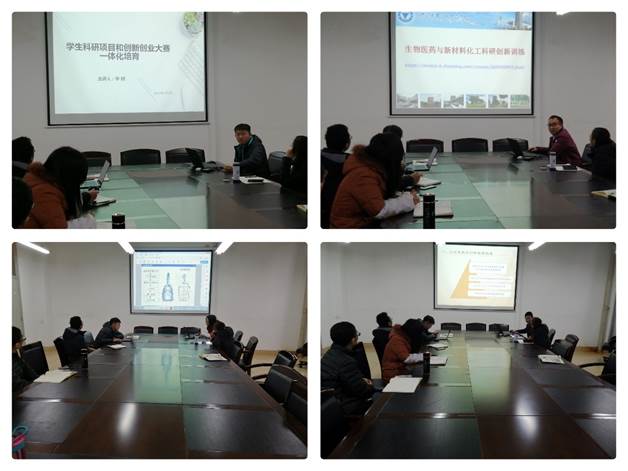 《生物医药与新材料化工科研创新训练》是生化学院结合专创融合开设的创新创业新课程,将在2019-2020学年第二学期面向2019级学生首次开设;是学院创新型工程人才三维进阶式培养体系构建和特色人才培养的重要组成部分。为了达到良好的教学效果和教学预期,前期课程组已经进行了多次研讨和调研,并进行了学情分析、任务分解和集体备课。此次教研活动对课程教学安排、教学内容、教学方式、课程考核方式及成绩组成等作了详细的讨论和安排。根据教学工作安排,教师对下学期的课件进行集体展示,旨在规范教学环节、提升教学质量,凝集教学智慧,促进教师交流。