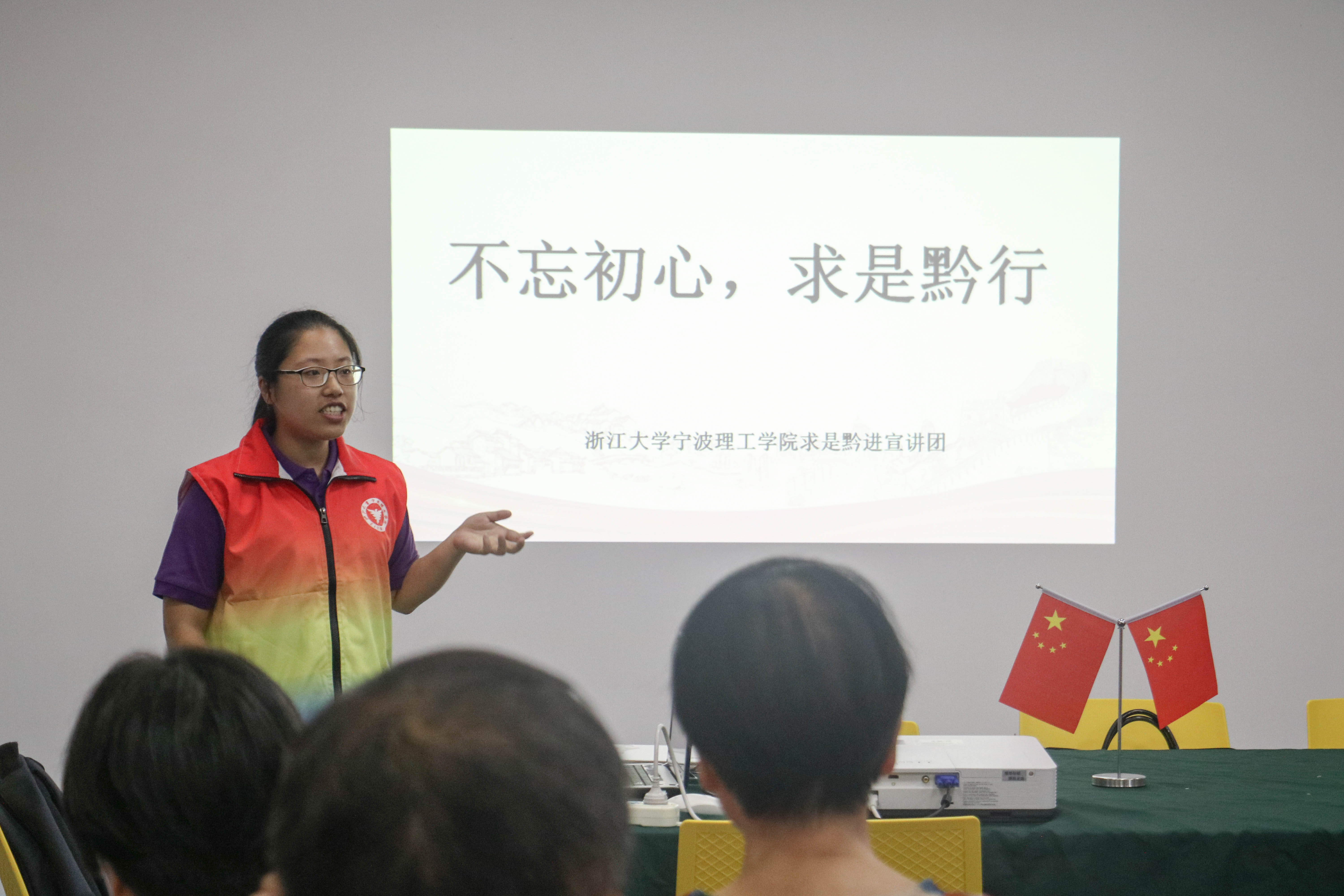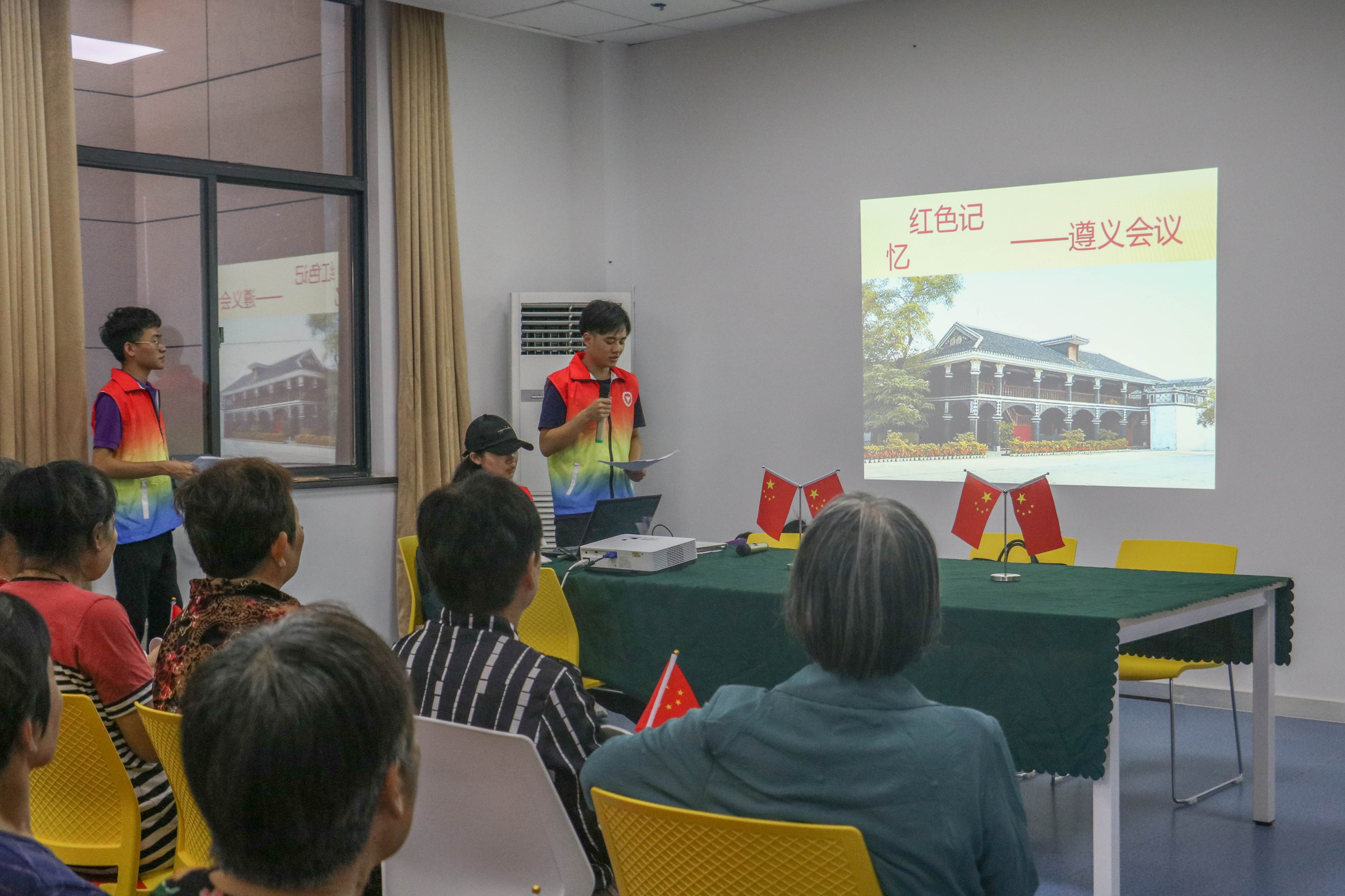 同学们以暑期贵州之行的见闻为起点,旁征博引,多维度、多层次地向大家详细介绍了中国共产党在长征途中的艰难险阻与遵义会议的历史地位,一起感悟中国共产党人艰苦卓绝的斗争精神和红军烈士英勇奋战的革命精神。同时以浙大师生在国难当头依旧坚持“教育救国,科技兴邦”的西迁历史为主线,与社区党员分享了浙江大学流亡办学的经历,用生动的事例为大家诠释了困境中坚持办学,在办学中不忘抗日的浙大精神。