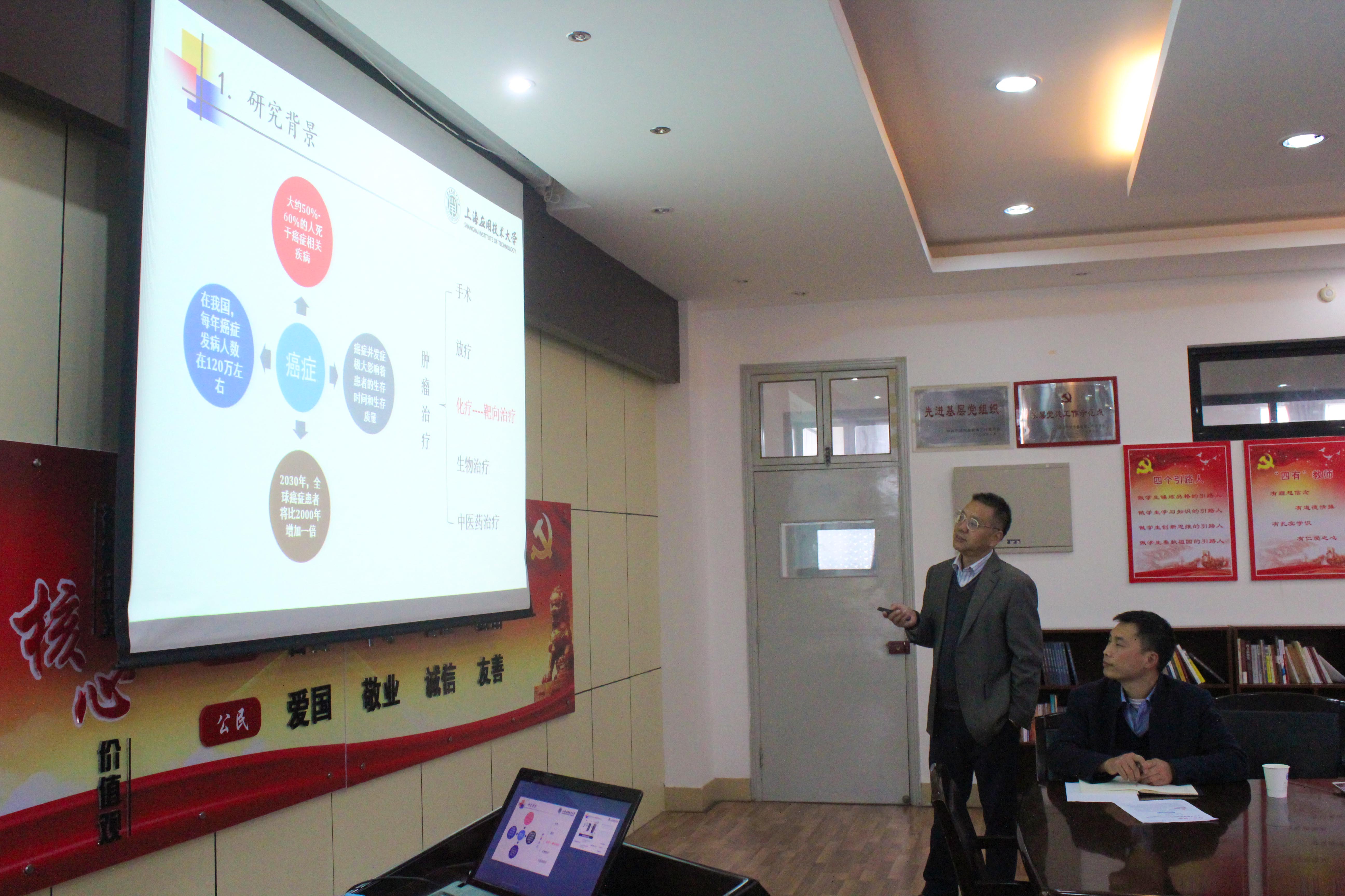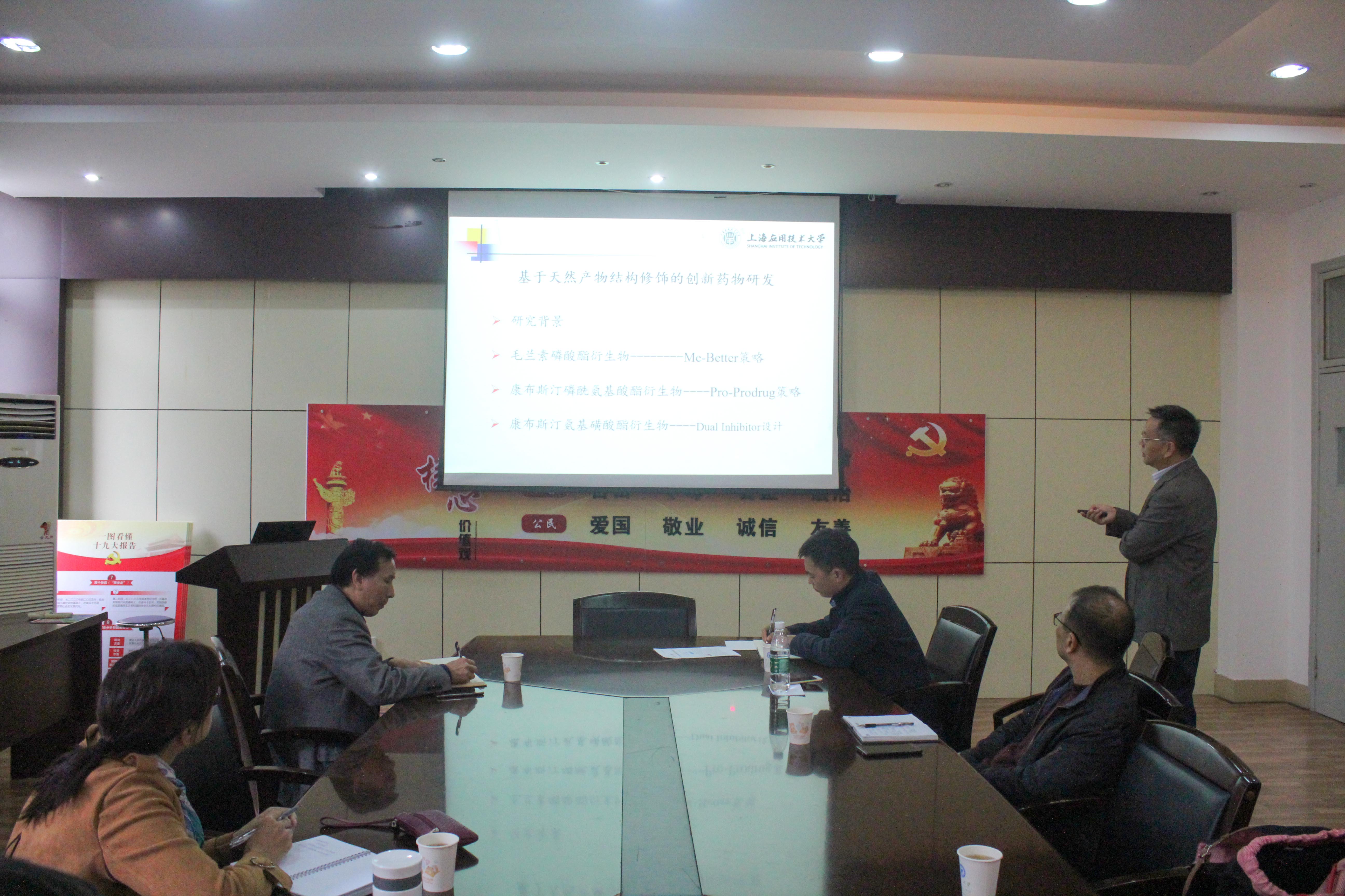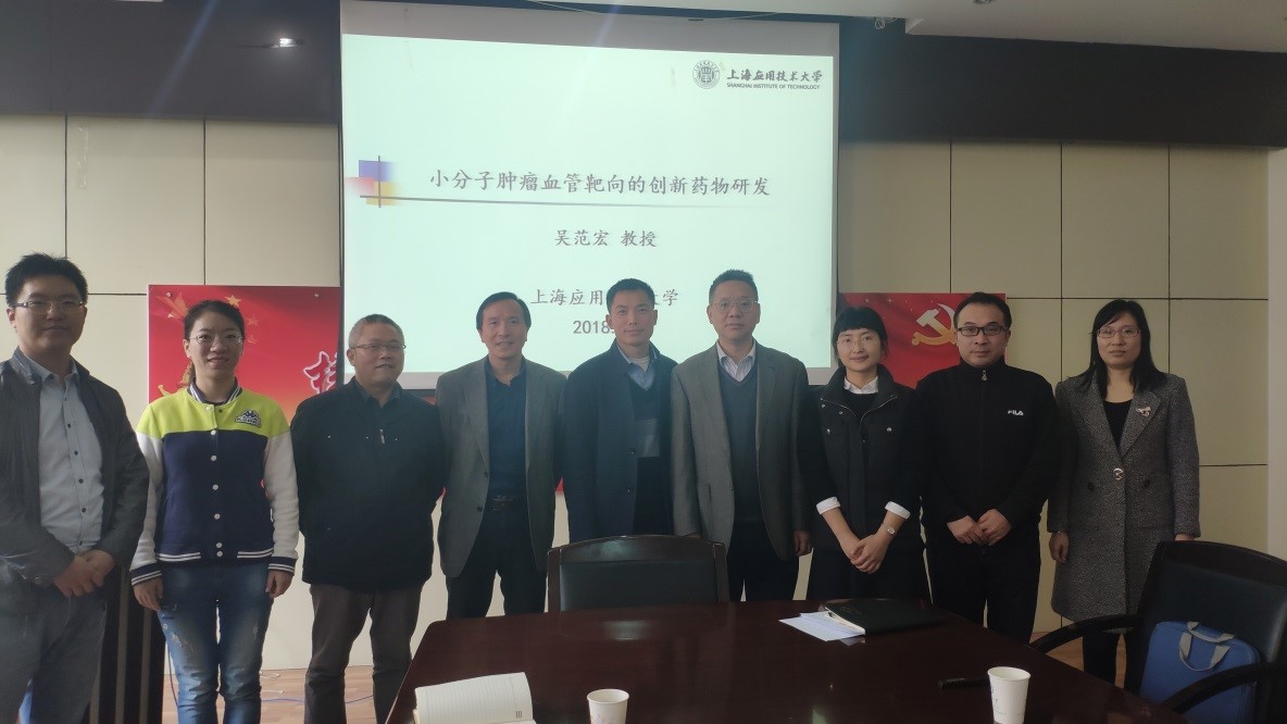 2018年11月28日,应我院制药工程研究所所长高章华教授的邀请,上海应用技术大学吴范宏教授来生化学院参观访问,并作了主题为《小分子肿瘤血管靶向的创新药物研发》的学术报告。我院各研究所的多位教师、研究生以及来自宁波大学等兄弟院校的多位教师参加了报告会。与会人员就小分子靶向抗肿瘤新药研发和工艺创新、人才培养、药物申报、有机氟化学领域的研究等方面进行了的交流和探讨。会后,围绕制药工程培养方案及专业建设,吴教授与相关老师展开了深入讨论并提出了许多有益的建议。本次交流,加强了双方之间的了解并为以后进一步合作打下了扎实基础。