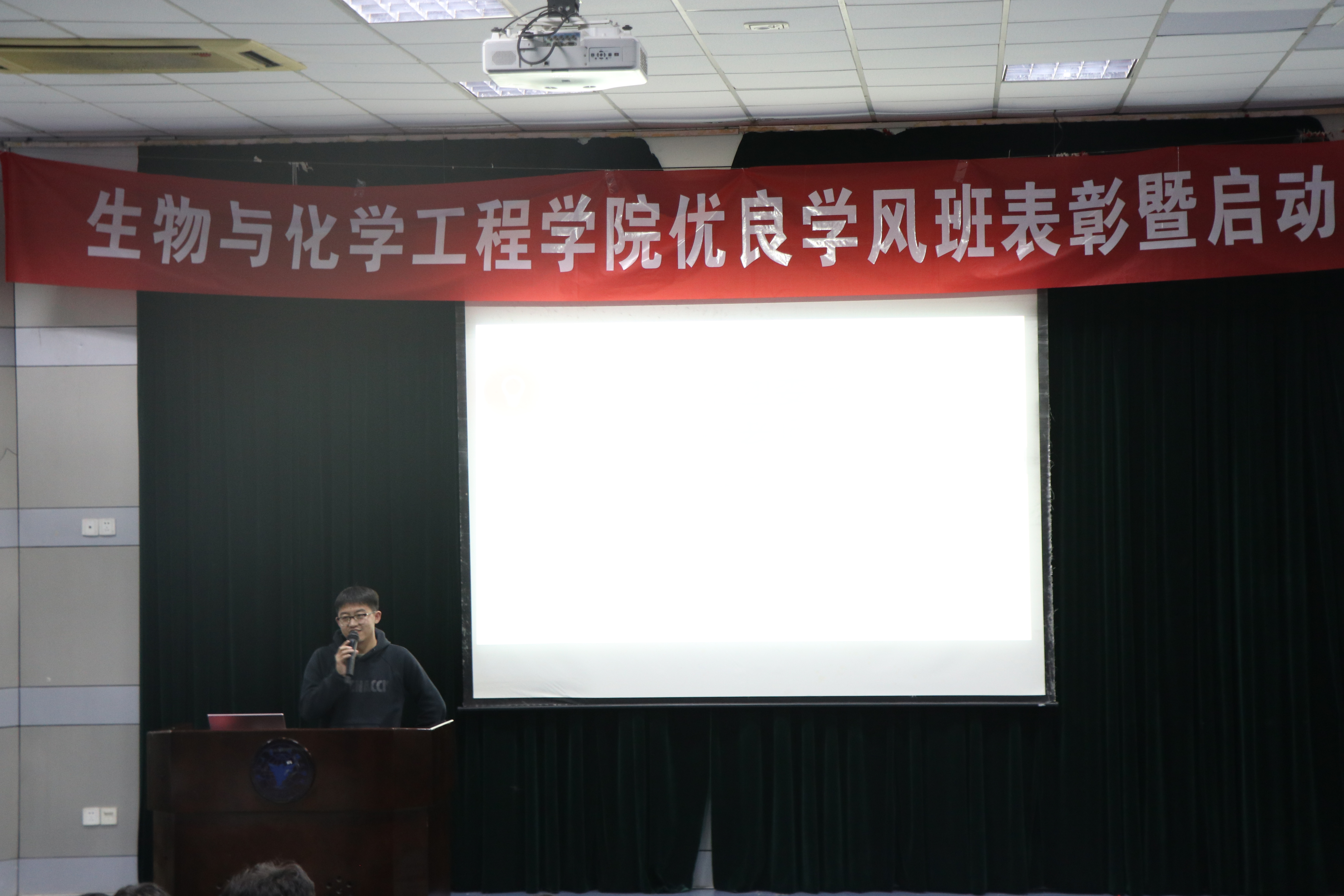 楼文军副书记首先分析了生化学院学风建设的创建思路和工作特点,他充分肯定了上一学年学院优良学风班创建工作取得的成绩,学院获得了17-18学年学风建设先进单位离不开每一位同学的努力。各班级在创建过程中,学生到课率、四六级通过率、考研考公比例、论文发表数量都有了明显的提高,创建成效显著。同时他也从学院角度,班级角度、学生干部角度、学生个体的角度出发找准不足之处并提出建议,在新的学年里要继续以优良学风班创建作为学风建设的重要抓手,提高认识、深化“学风优良人人有责,优良学风人人共享”的创建思路,要注重实效,多方联动,将学风建设深入人心,各项工作做在实处。