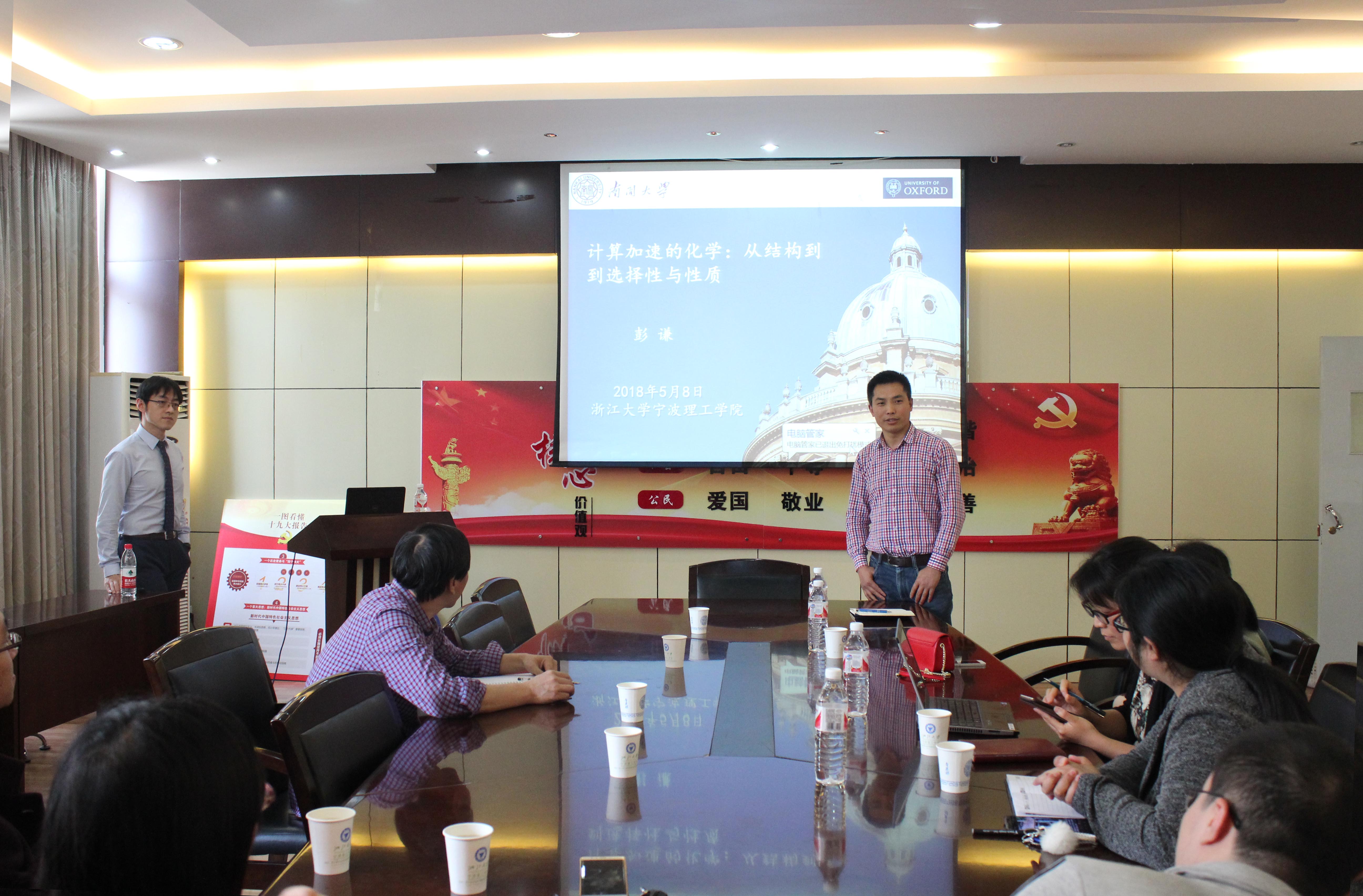 2018年5月8日(星期二)下午,南开大学彭谦研究员应我院邀请做了主题为《计算加速化学: 从结构到选择性与性质》的学术报告。学院制药工程研究所、化学工程研究所的老师及研究生们参加了本次报告会,会议由生化学院高章华教授主持。