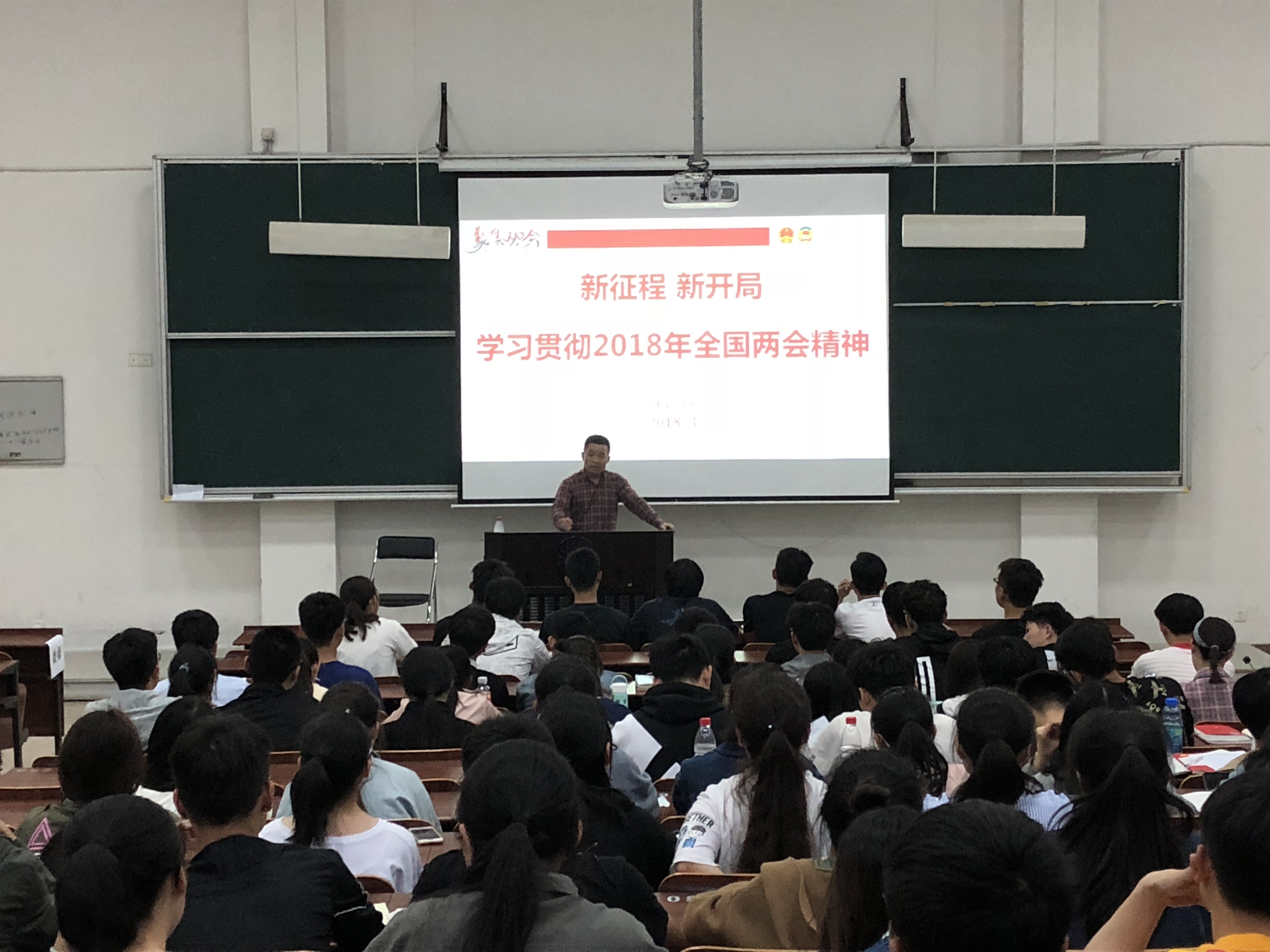 随后法政学院陈印昌老师为党校学员做了题为《新时代,新开局——全国两会精神解读》的第一讲。
