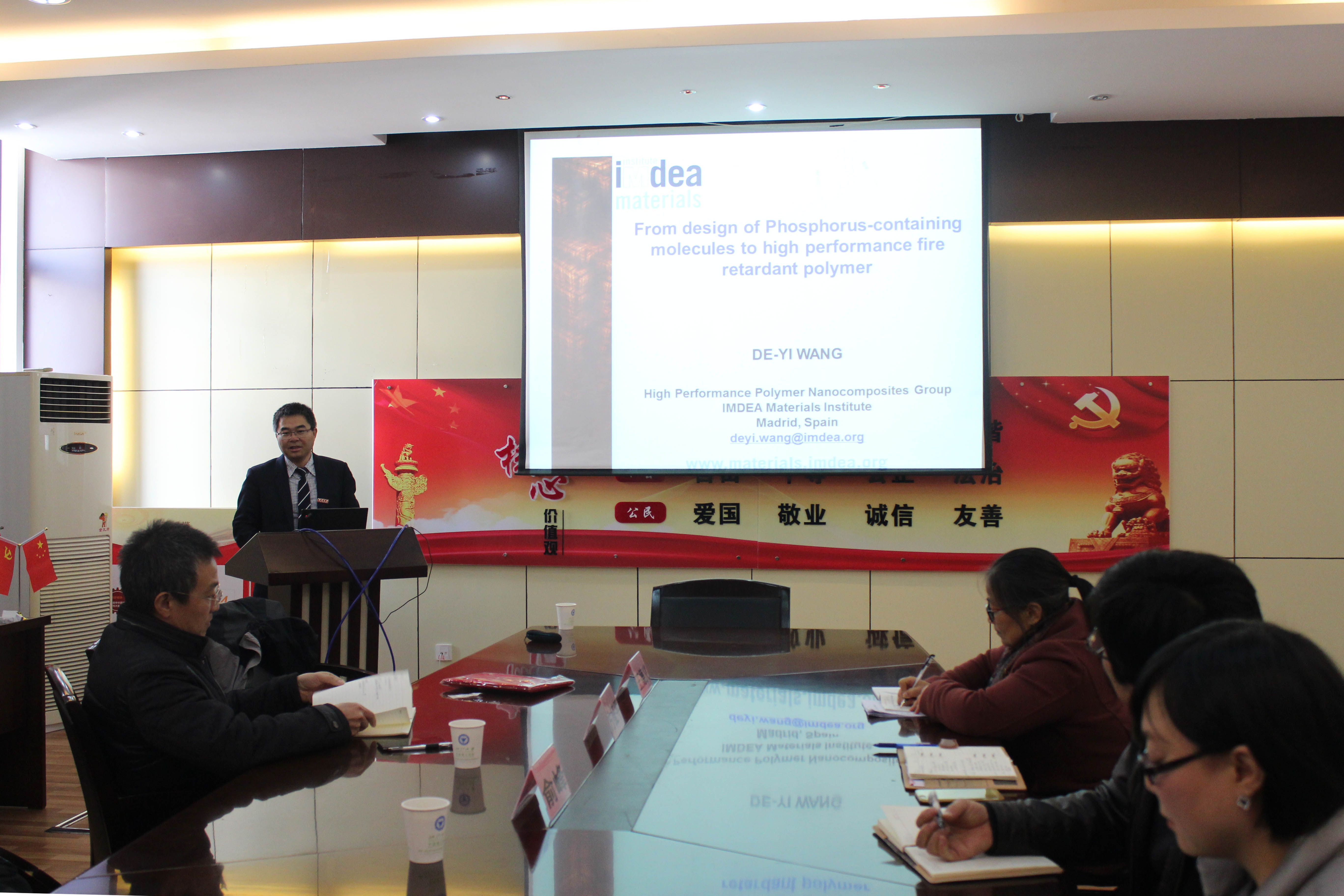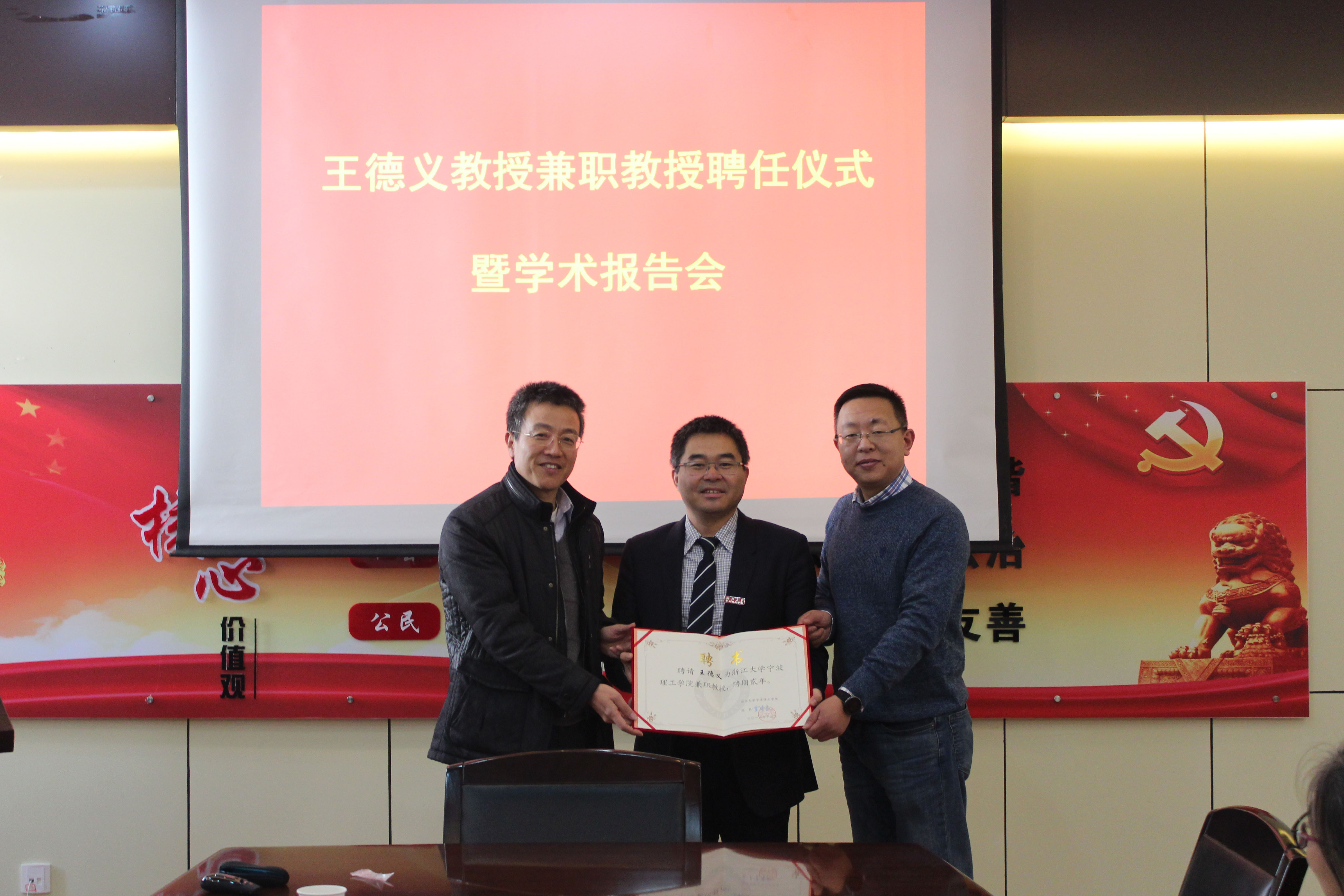 聘任仪式上,俞峰副处长对王德义教授作了详细介绍,方征平院长向其颁发了聘任证书并为其佩戴校徽。随后,王教授作了主题为“From design of Phosphorus-containing molecules to high performance fire retardant polymer”的学术报告。他领导的研究团队在高性能阻燃多功能基聚合物复合材料、聚合物纳米复合材料以及环境友好阻燃材料等方面做了大量特色工作,并取得了丰硕的成果。王教授的加入,将推动双方团队深入合作,进一步推进我院高水平科研、人才培养等工作。