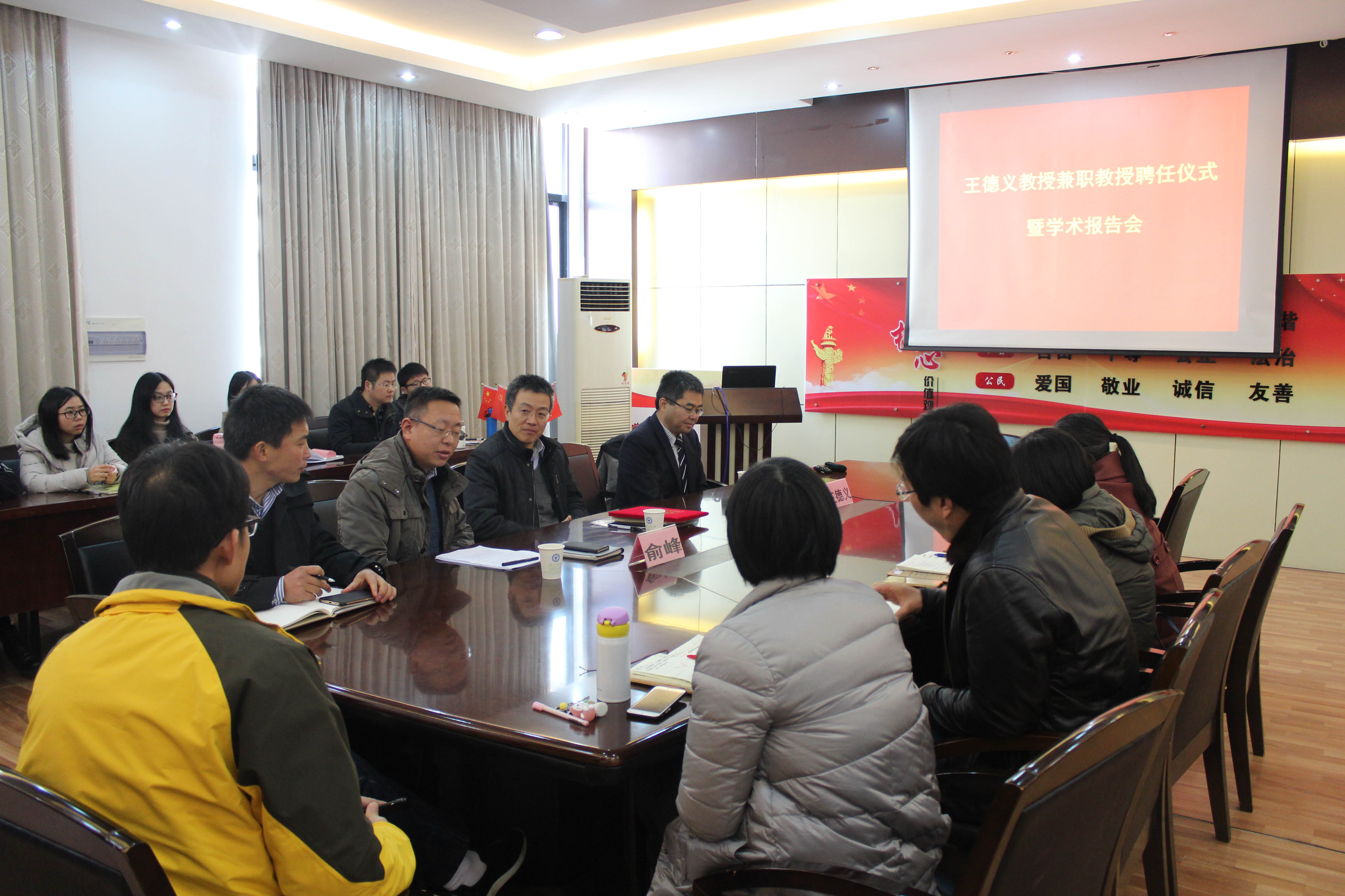 2017年12月18日,西班牙马德里高等材料研究院王德义教授兼职教授聘任仪式暨学术报告会在我院NE209举行,学校人事处副处长俞峰,生化学院院长方征平及学院部分师生参加了本次报告会。会议由方征平院长主持。