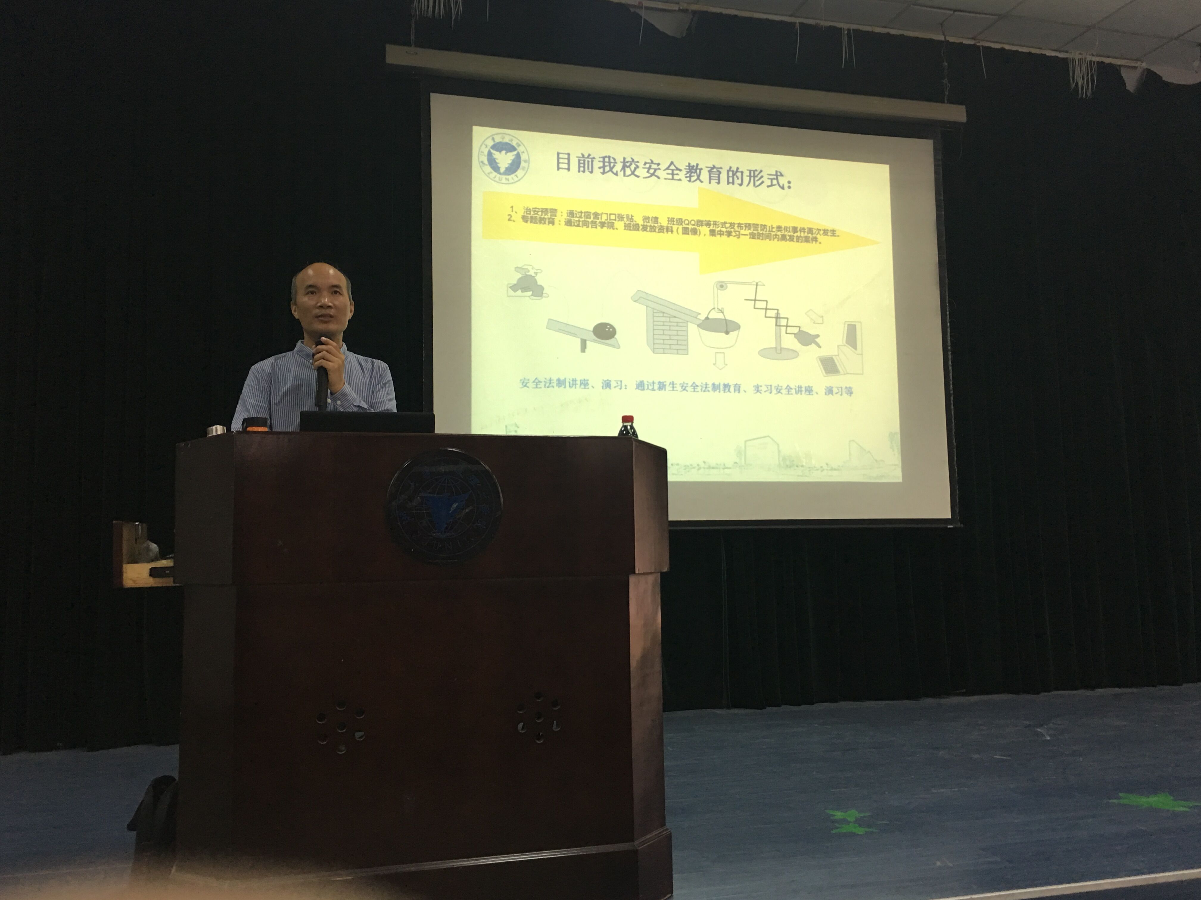 为增强2017级新生安全意识,提高自我保护能力,创建平安校园,营造文明氛围,生化学院在10月13日13:30于学术报告厅NF103开展面向2017级新生的大学校园安全教育讲座。本次讲座由保卫处叶卫树老师执讲,院学工办思政主管张硕老师主持。