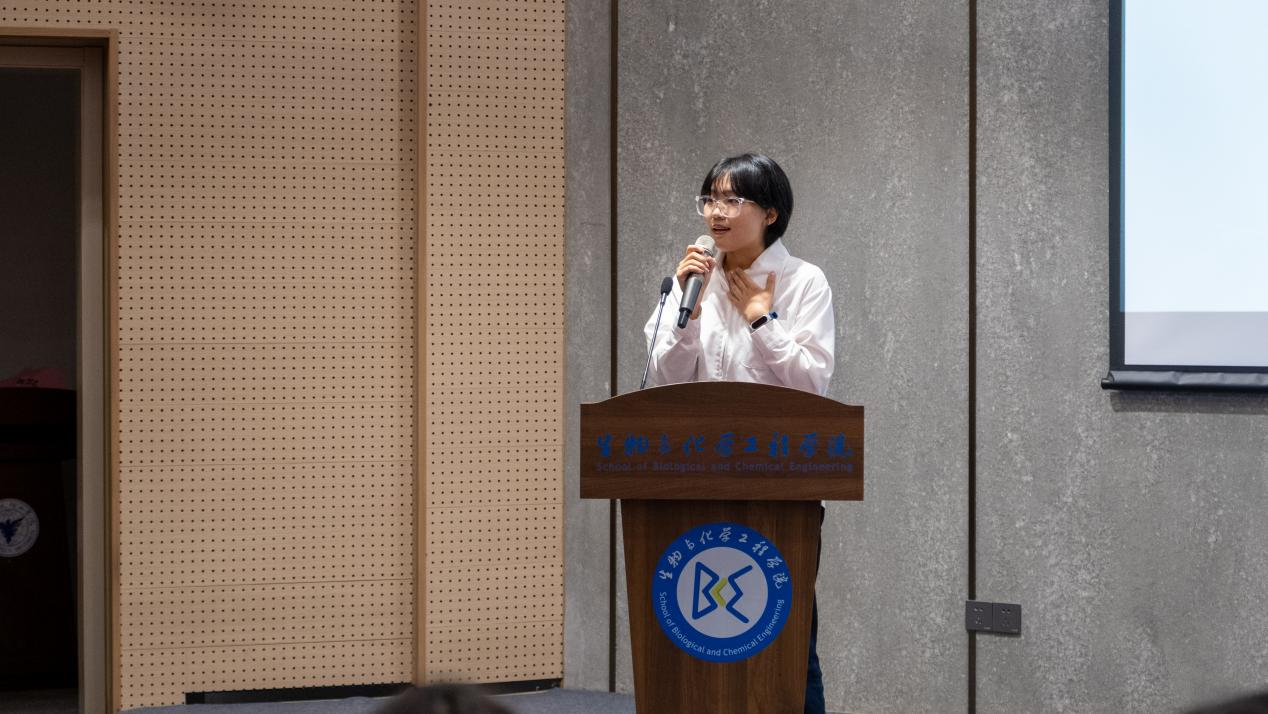 紧接着,化工与制药研究所胡桂香教授以绿色化工为主题,向我们展现了化工与我们日常生活的紧密关联。生物工程研究所胡升副教授用严谨的数据和科研所取得的成果向同学们展现了生物工程在未来远大的发展前景。