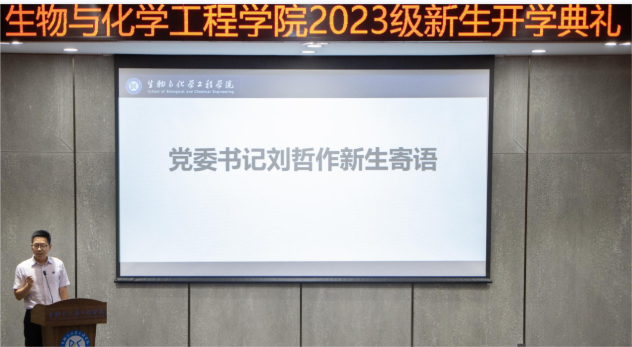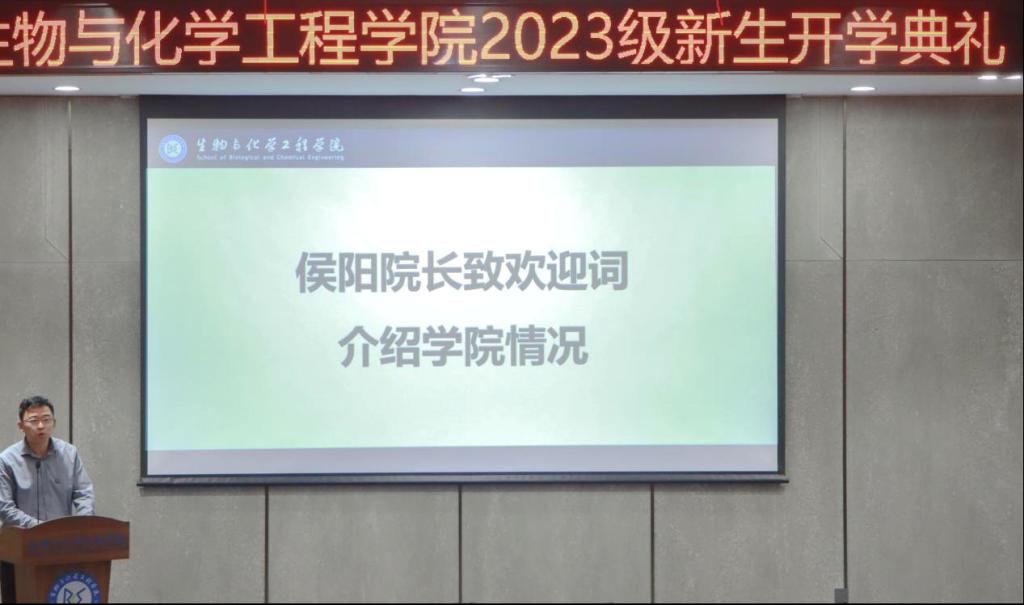 首先,由侯阳院长致欢迎词介绍学院情况,他从“院史院情”“党建引领”“师资队伍”“学科科研”“人才培养”五个方面切入,用细腻的语言和真实的数据向同学们展示了学院的优秀与近年来不断的进步。而不断壮大的师资队伍,也为今后同学们的学习打下了坚实的基础。在发言的最后,侯阳院长也对同学们表达了最真挚的欢迎,欢迎各位新生加入生化这个温暖的大家庭。