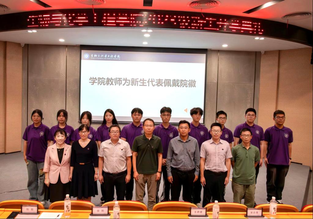 刘哲书记讲话结束后,学院教师为各班新生代表佩戴院徽。