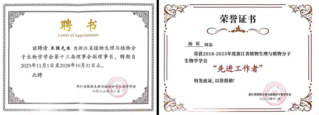 大会选举产生了第十三届浙江省植物生理与植物分子生物学学会理事会,生化学院王强教授当选为学会第十三届理事会副理事长。在大会闭幕式上,学会对先进工作者和优秀学术报告举行了隆重的颁奖仪式,杨丽博士获得学会“先进工作者”称号。