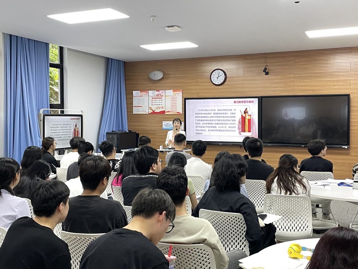 生化学院党委副书记、纪委书记王常青围绕廉洁从业主题,从坚守底线、清正廉洁,敢于担当、模范引领,警钟长鸣、严卡关卡三个维度开展专题教育,并用“安全”“健康”“成长”六个词勉励毕业生党员增强安全意识、培养强健体魄,不断学习求索。