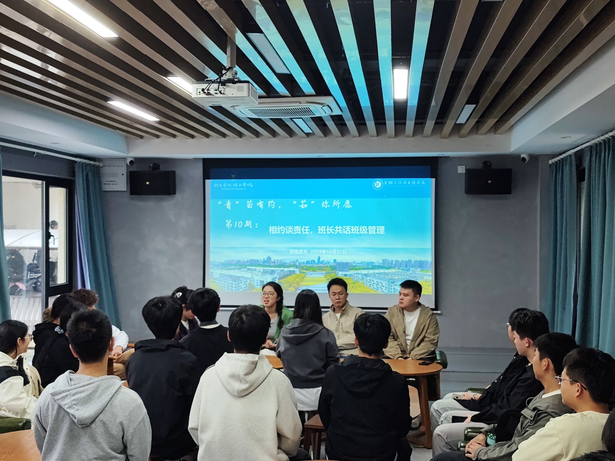 2024年10月31日中午,生化学院在浙里星光街区“星光汇”开展“‘青’苗有约 ‘茹’你所愿”第十期活动,本次活动以“相约谈责任,班长共话班级管理”为主题,邀请学院各班级班长参与座谈。学院党委委员闫雪茹出席活动,会议由学工办游旭彪老师主持。