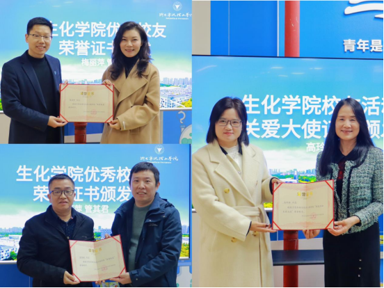 随后,由刘哲书记向梅丽萍校友授予优秀校友荣誉证书;吴志革副院长向管其君校友授予优秀校友荣誉证书;陈佳副院长向高玲娣女士授予校友活动关爱大使荣誉证书。