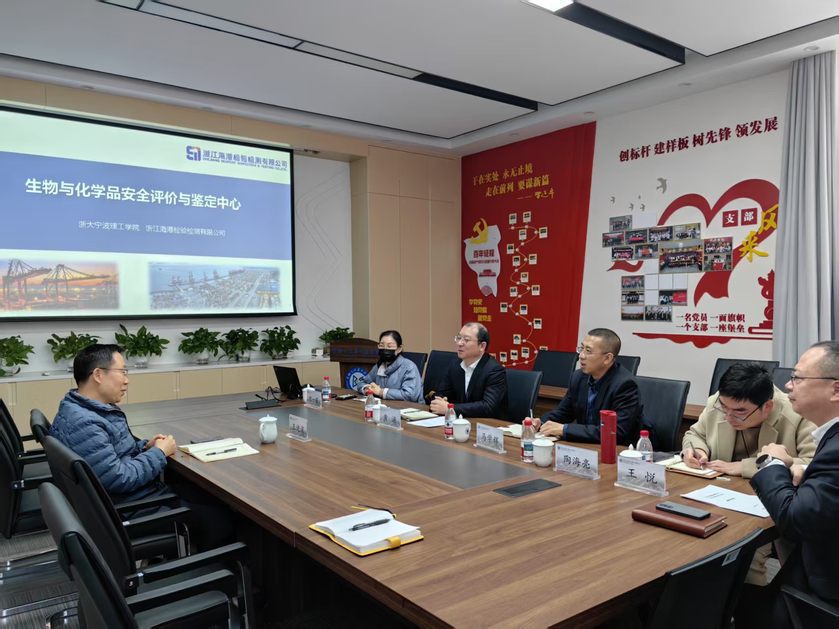 2025年3月18日,宁波外轮理货有限公司总经理黄涌、副总经理陶海亮率浙江海港检验检测有限公司何一芳、马学辉和王悦一行到访生物与化学工程学院,副院长王进波接待并主持会议。双方就深化地方合作展开洽谈,旨在通过产学研深度融合,推动相关领域技术创新与人才培养,助力地方经济高质量发展。