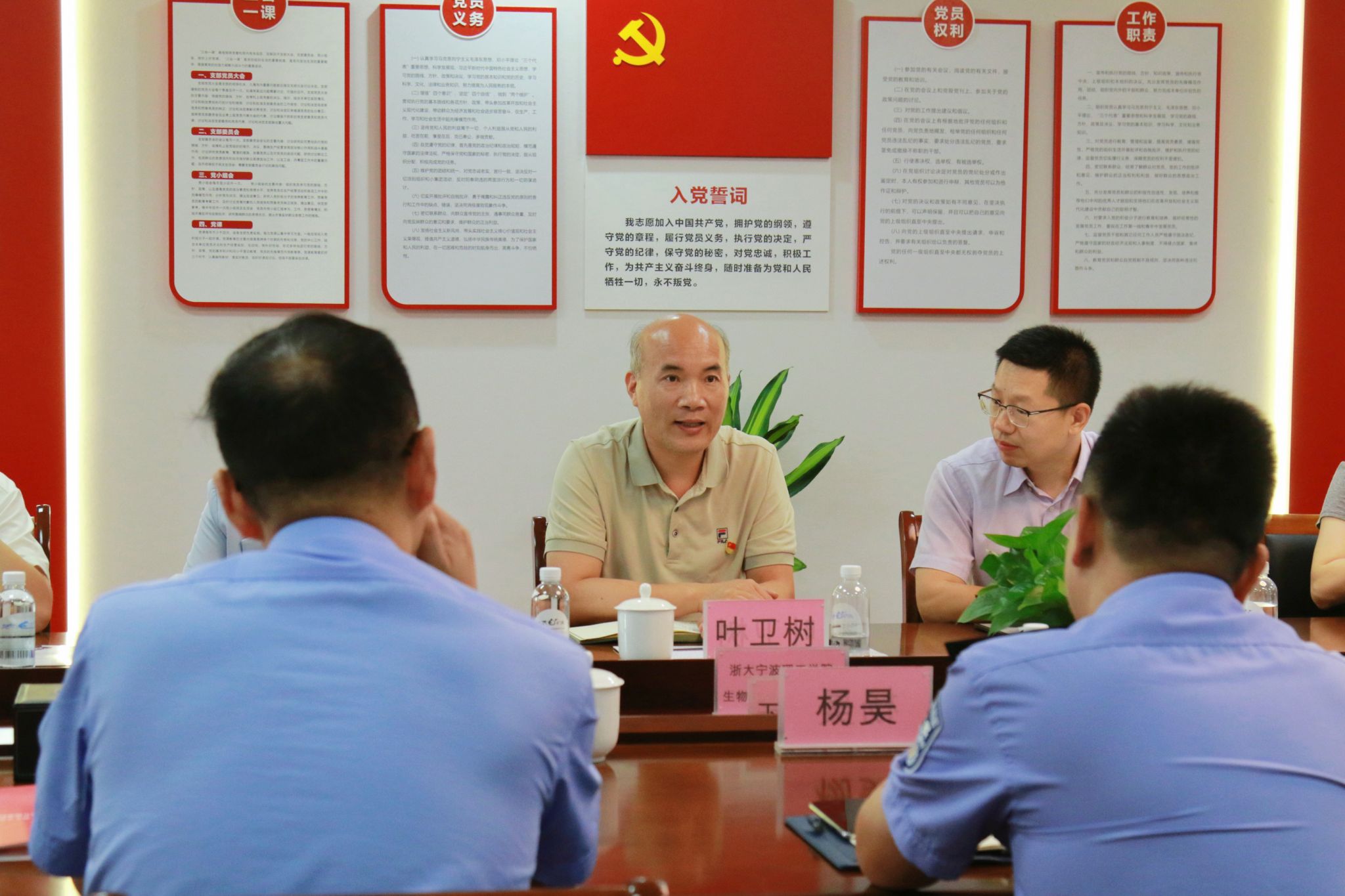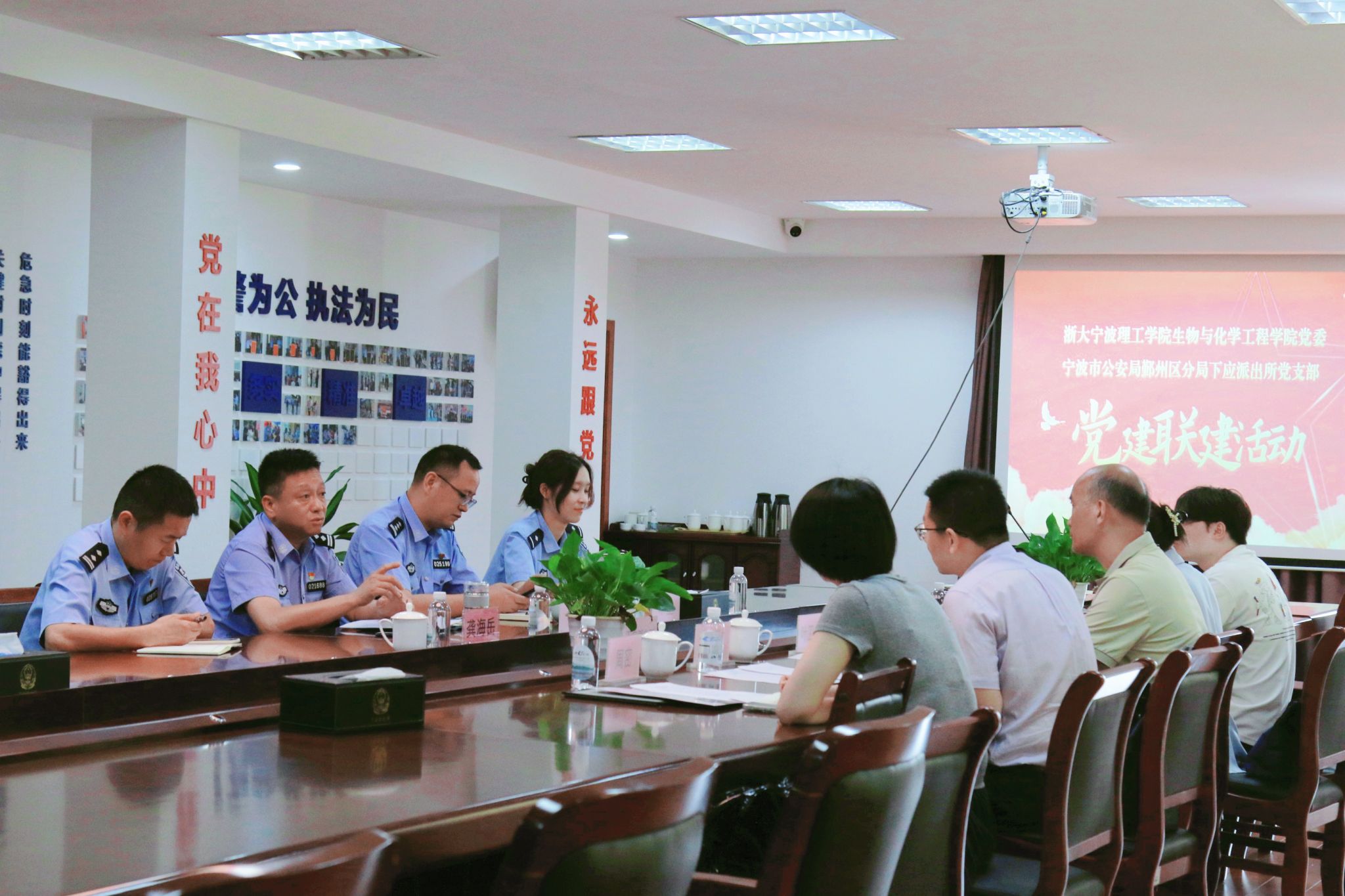 为深化校警合作,共筑平安校园,7月11日,生化学院与宁波市公安局鄞州区分局下应派出所开展党建联建活动。学校安全保卫部部长叶卫树,生化学院党委书记刘哲,生化学院党委副书记、纪委书记王常青,下应派出所所长杨昊、教导员华奎、副所长龚海岳出席活动,生化学院、学校安全保卫部、下应派出所代表参加活动。