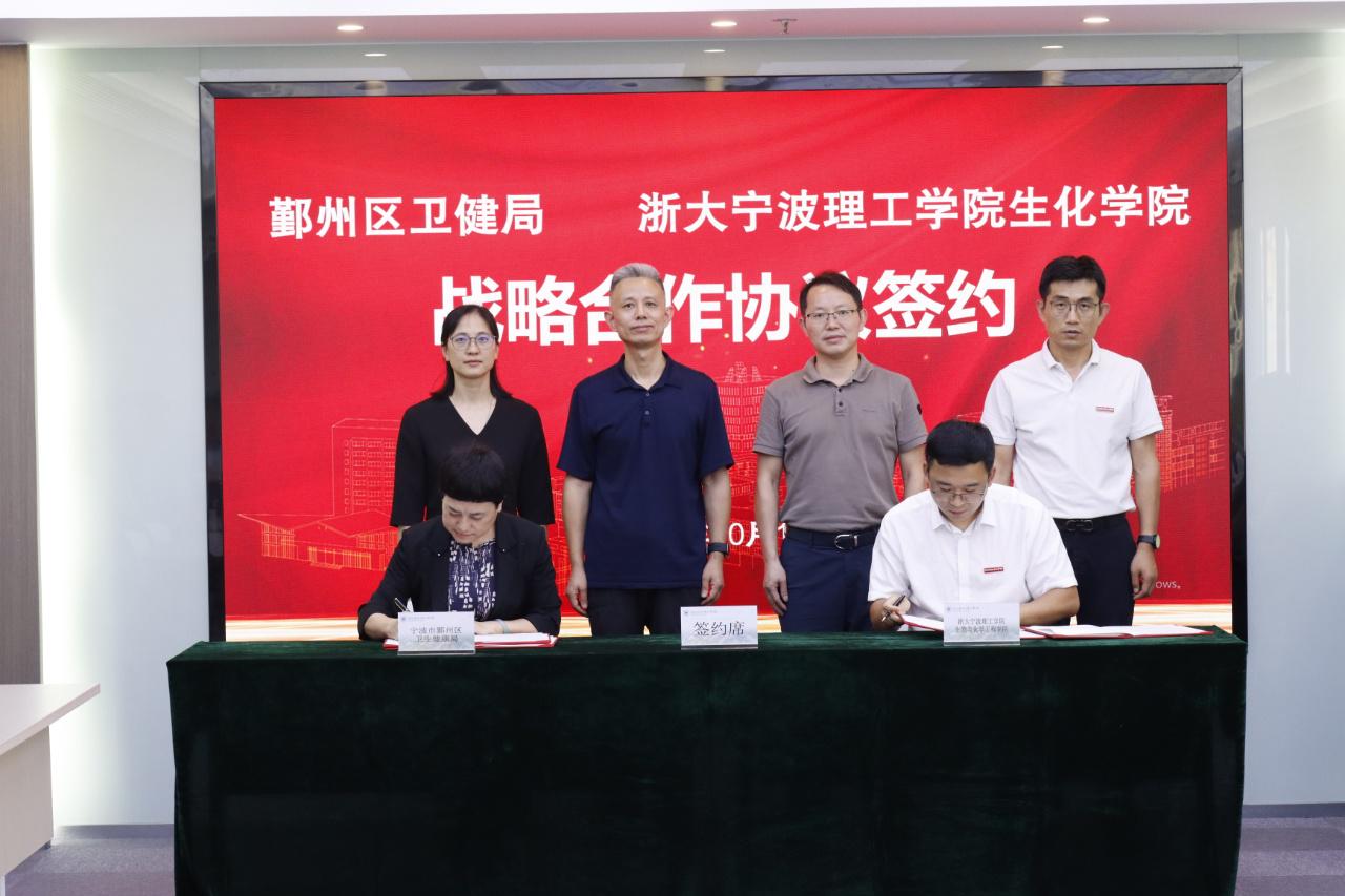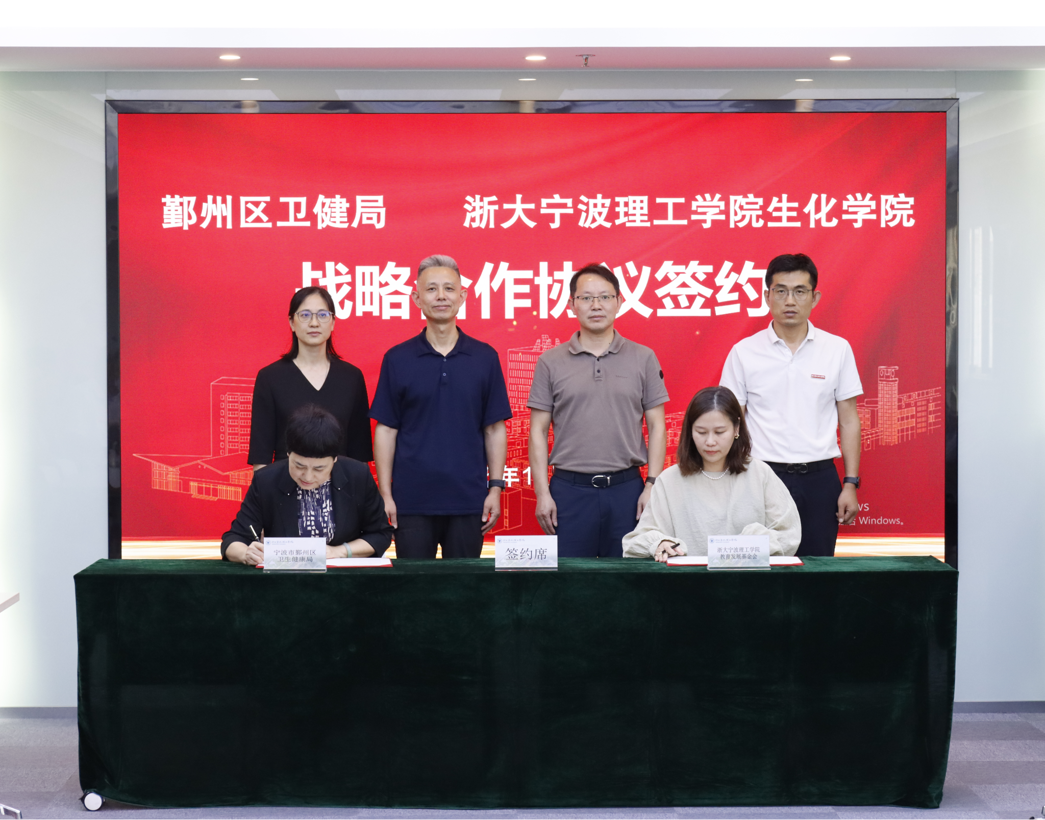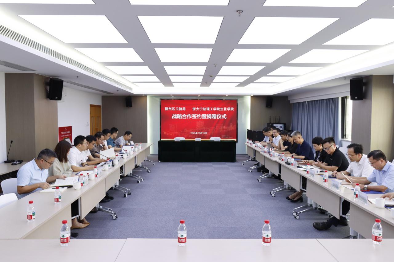 10月16日下午,宁波市鄞州区卫生健康局与浙大宁波理工学院生物与化学工程学院战略合作协议签约暨捐赠仪式在我校举行。学校副校长、教育发展基金会副理事长胡余波、鄞州区卫生健康局副局长、党委副书记朱宇、副局长、党委委员钟维红、鄞州区疾控中心主任江志琴出席仪式。鄞州区各医院负责人、学校相关职能部门负责人、生化学院领导班子成员参加。生化学院院长侯阳代表学院签署战略合作协议、学校教育发展基金会秘书长张硕代表基金会签署捐赠协议,仪式由生化学院党委书记刘哲主持。