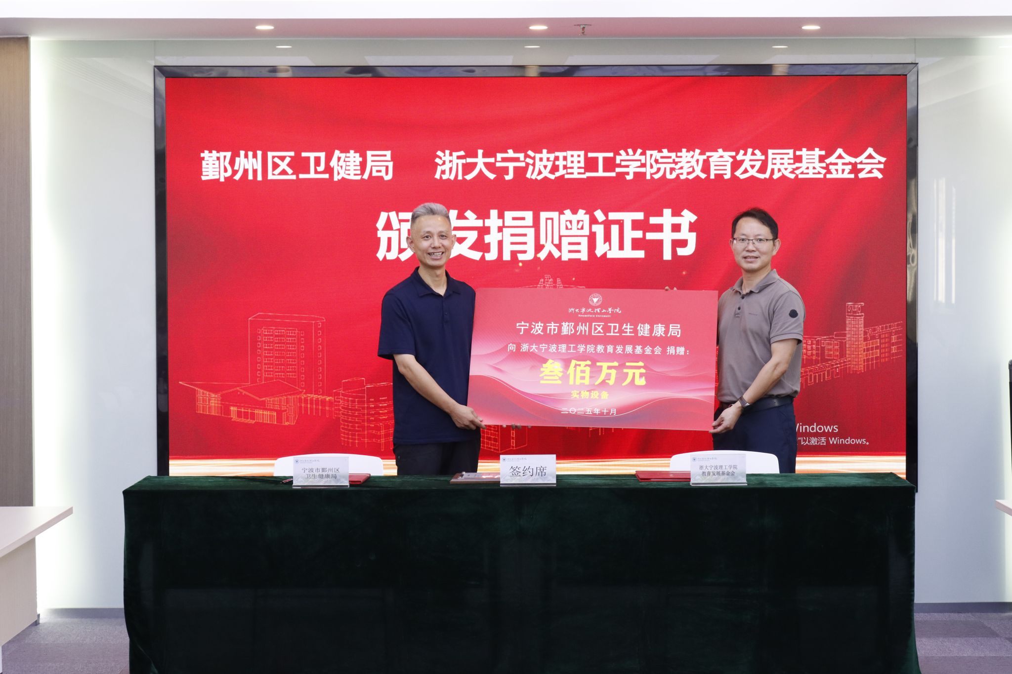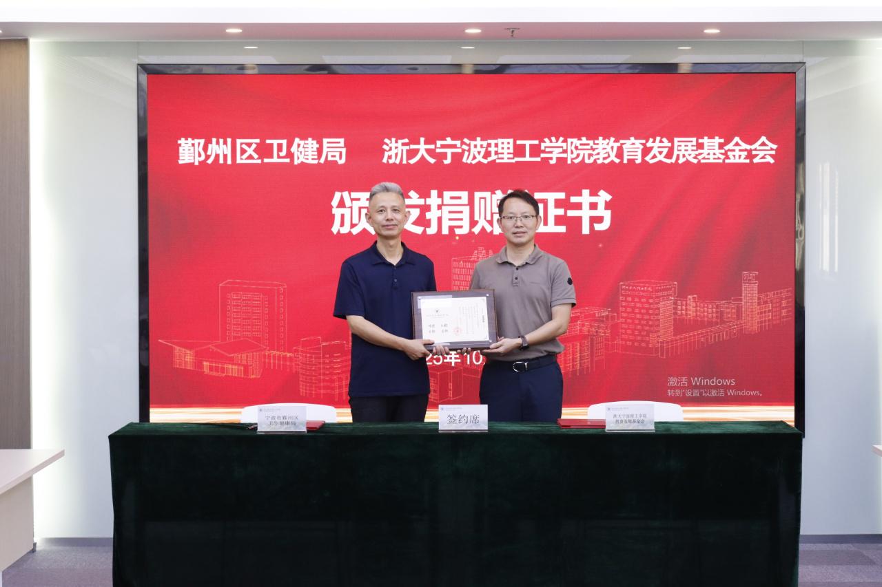 双方均表示,将以此次签约为起点,推动合作层次更深、领域更广,携手为健康鄞州、健康宁波乃至健康中国建设贡献更大的力量。 为感谢此次捐赠,副校长胡余波代表学校向卫健局颁发捐赠证书。