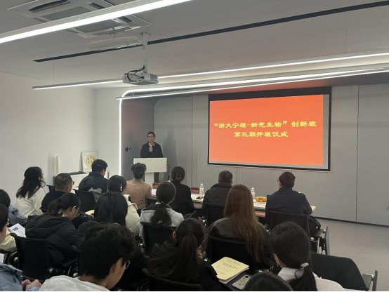 活动最后,陈波科长致辞,他对“浙大宁理-新芝生物”创新班这一产教融合模式予以充分肯定,他表示,创新班是新时代人才培养的重要创新,既体现了高校深化教育改革的责任担当,也展现了企业参与人才培养的前瞻意识。作为地方政府人才主管部门,我们高度赞赏这一创新实践,未来也将进一步沟通支持完善配套政策,期待以此为起点,出现更多校企对接平台,推动产教融合向更深层次发展。