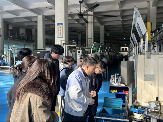 随后,师生深入生产车间与装配线,直观感受现代化制造企业的生产流程与技术体系,了解产业实际运作与人才能力要求。这段从“制造现场”到“创新源头”的完整动线参观,不仅让学生系统理解了一款精密产品从设计、生产到质检的全过程,更深刻感受到现代制造业对人才能力提出的新要求——不仅需要扎实的专业基础,更要具备跨学科思维、解决实际问题的能力,以及面对技术变革的持续学习意识。