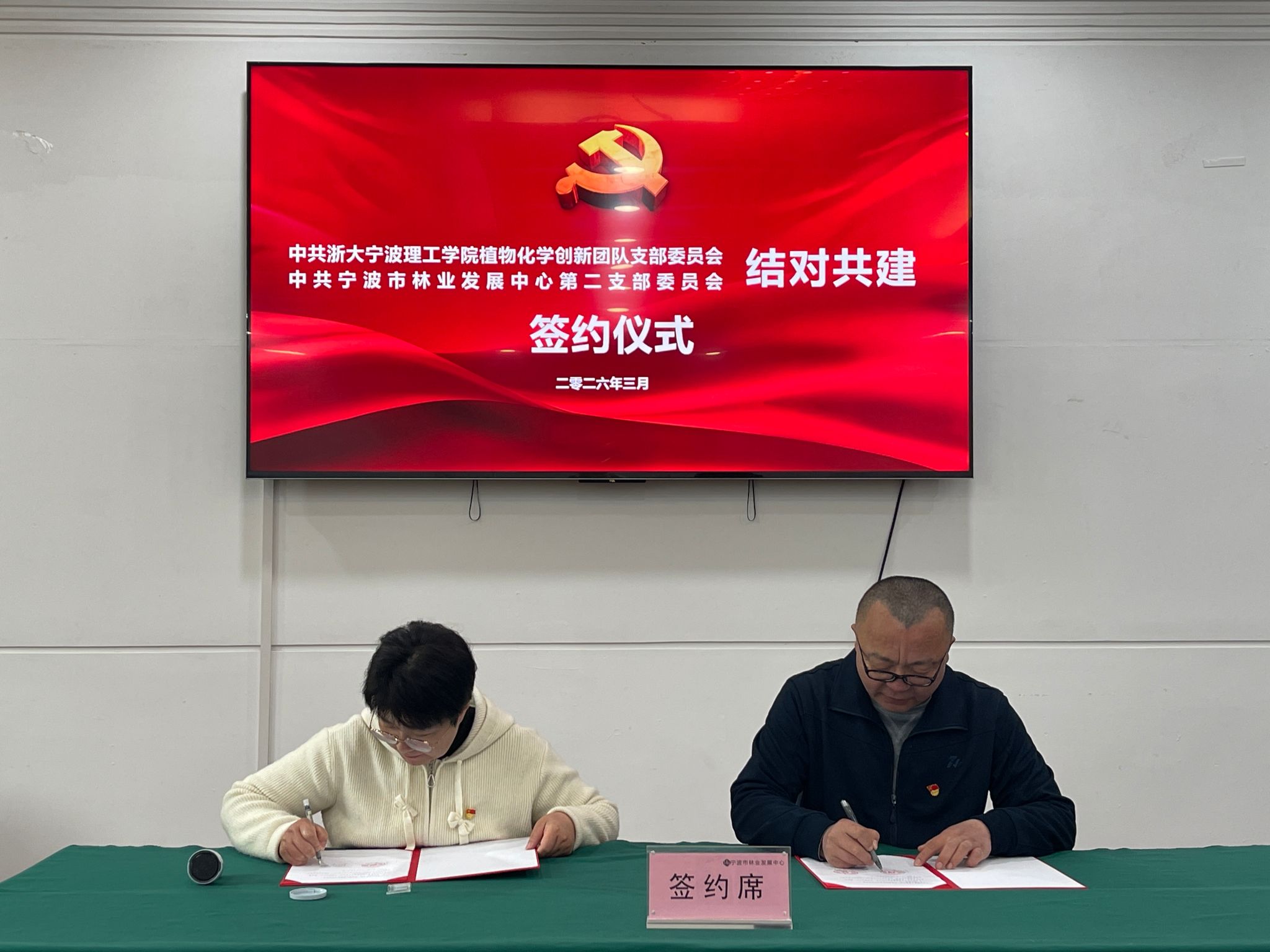 3月24日,浙大宁波理工学院生化学院植物化学创新团队党支部赴宁波市林业发展中心开展党建共建活动。双方举行签约仪式并开展座谈交流,围绕科技创新、产业融合及基层党组织建设等内容深入交换意见,明确将以共建为契机,推动资源共享、优势互补,携手服务地方经济社会发展。下午,支部党员一行前往四明山三叶青种植基地实地参观,深入了解林下经济作物种植模式与产业化进展。