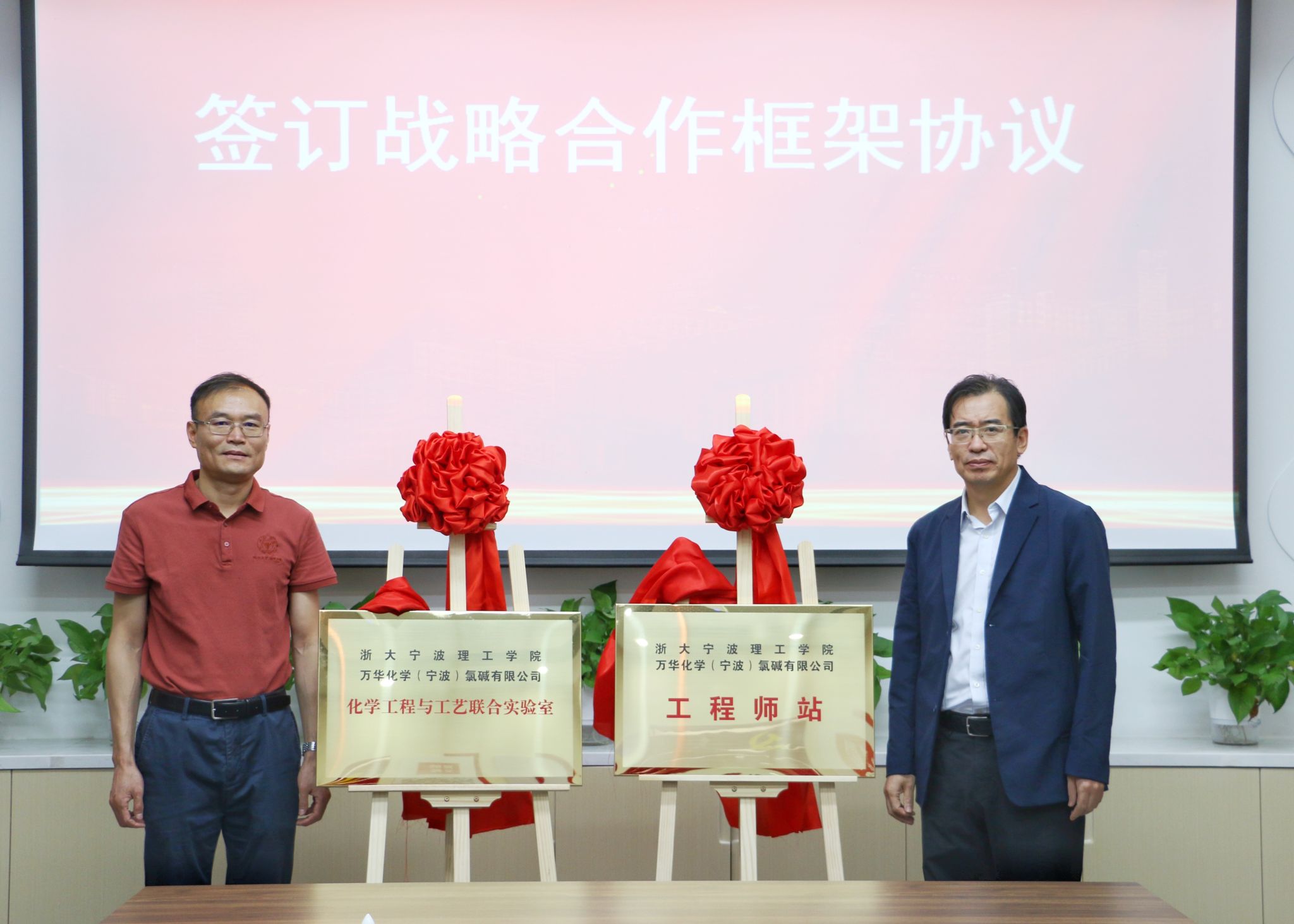 随后,张荣祥副校长和任方田总经理共同为浙大宁波理工学院-万华化学(宁波)氯碱有限公司工程师站、浙大宁波理工学院-万华化学(宁波)氯碱有限公司化学工程与工艺联合实验室揭牌。