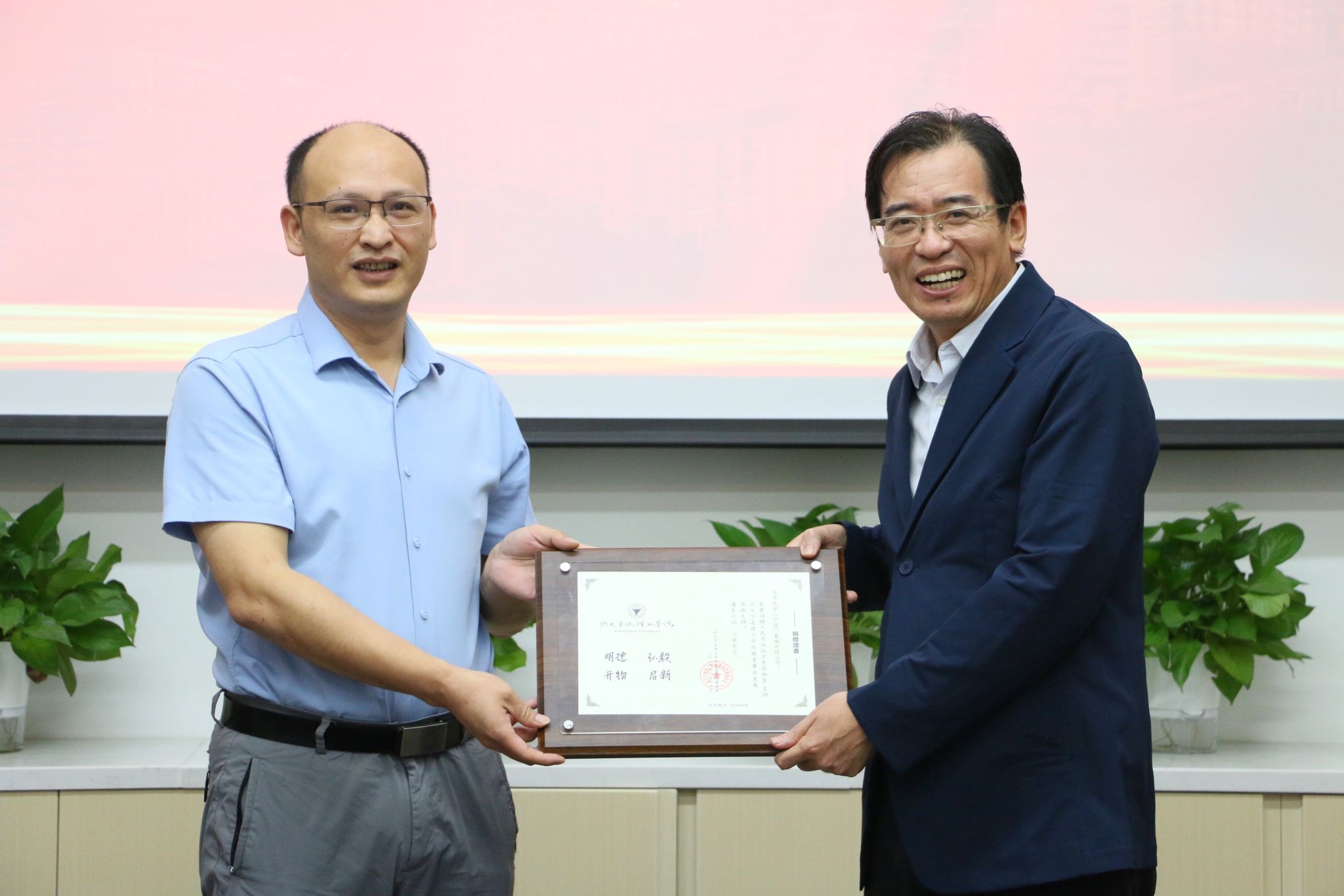 为进一步支撑学院的人才培养工作,万华化学(宁波)氯碱有限公司向学院捐赠了50万元实验物资,学校招就处处长郑健向企业颁发了捐赠证书。